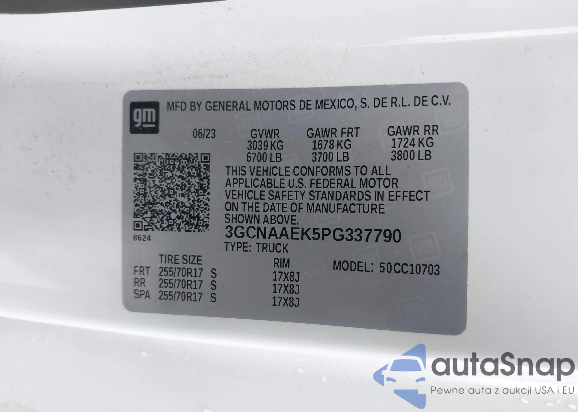 • VIN 3GCNAAEK5PG337790