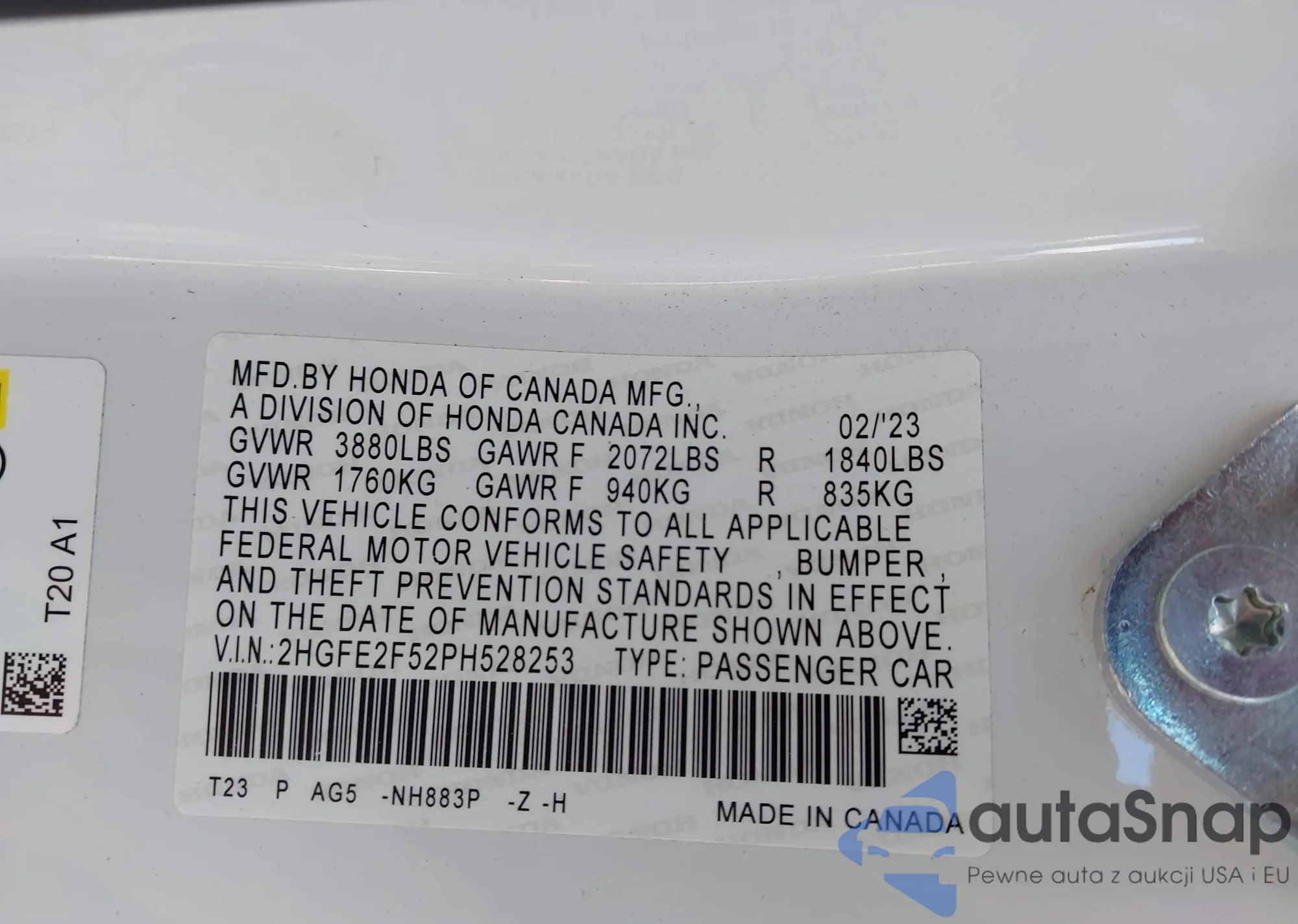 LOT: 43584595 VIN: 5J8TC2H5XML016387