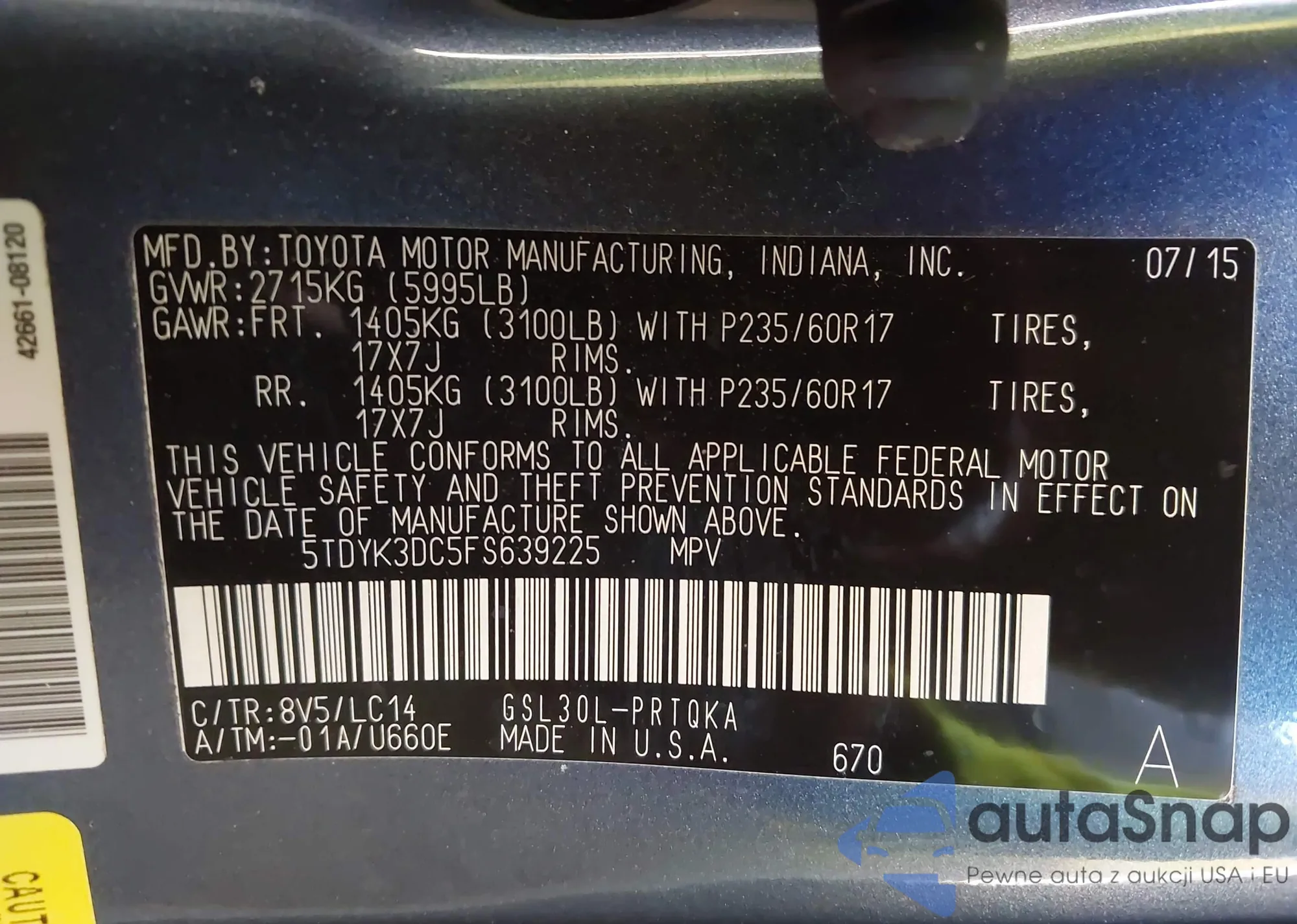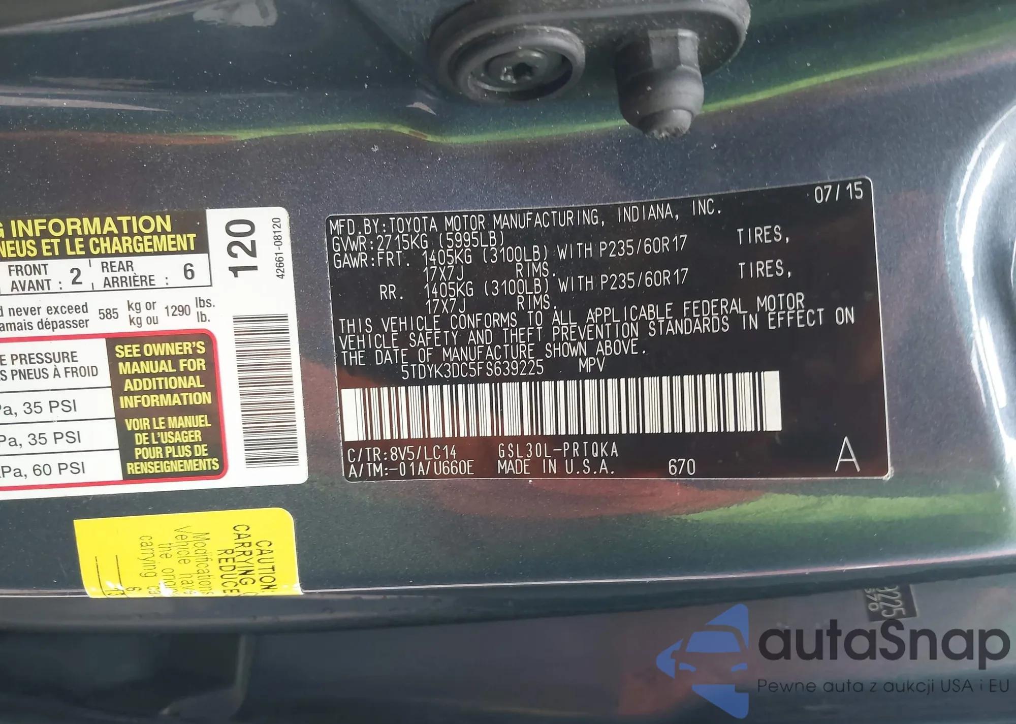 LOT: 43677958 VIN: 1GKKVRKD7FJ126359