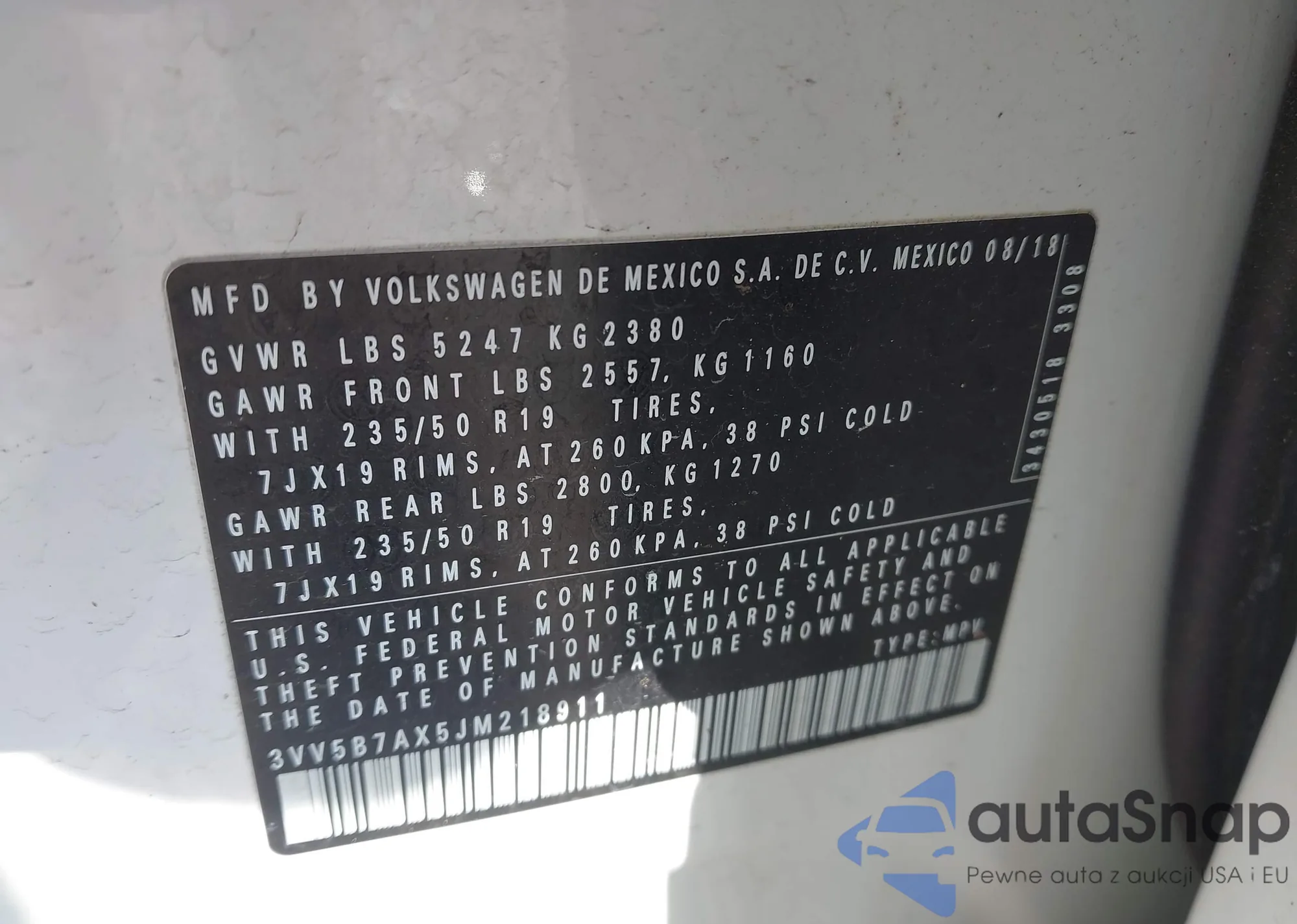 • VIN 3VV5B7AX5JM218911