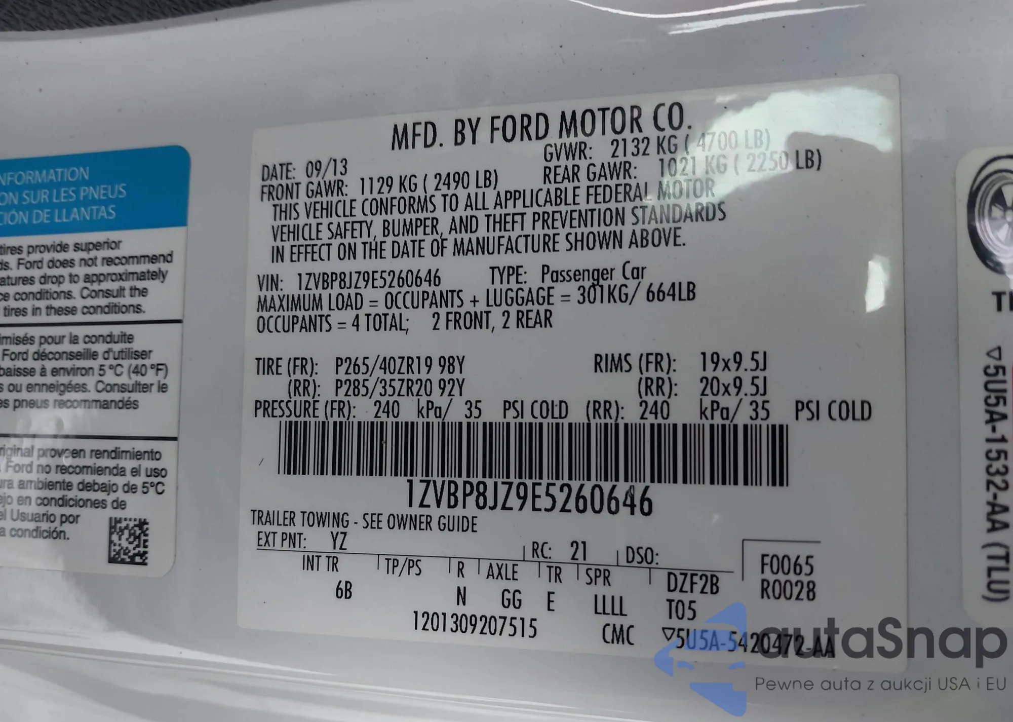 • VIN 1ZVBP8JZ9E5260646