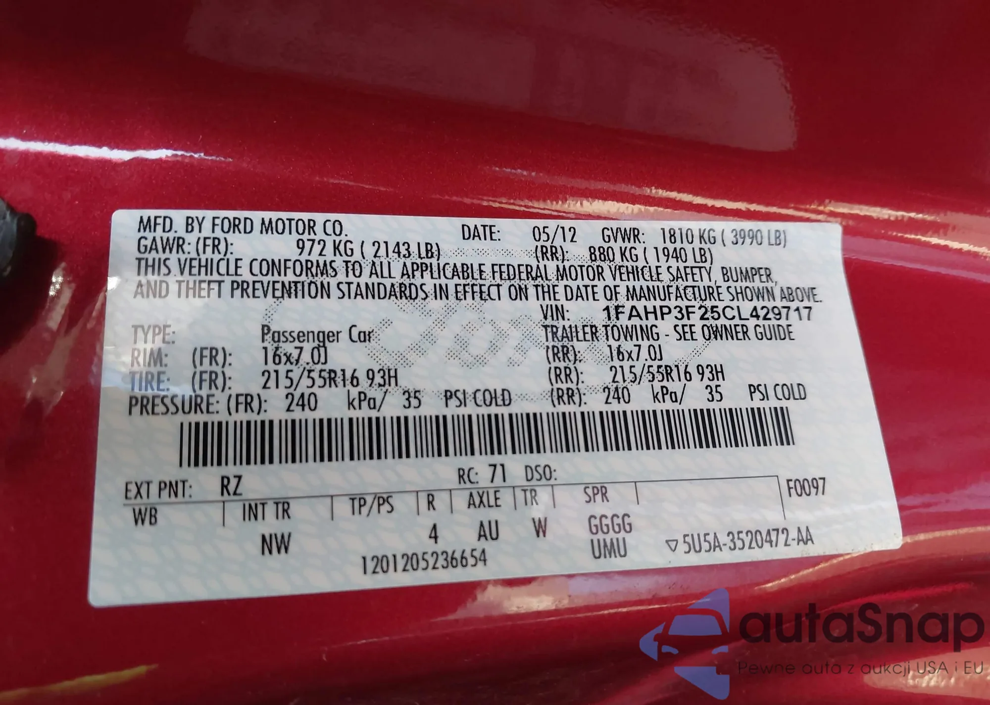 LOT: 43964517 VIN: 1FAHP3F25CL429717