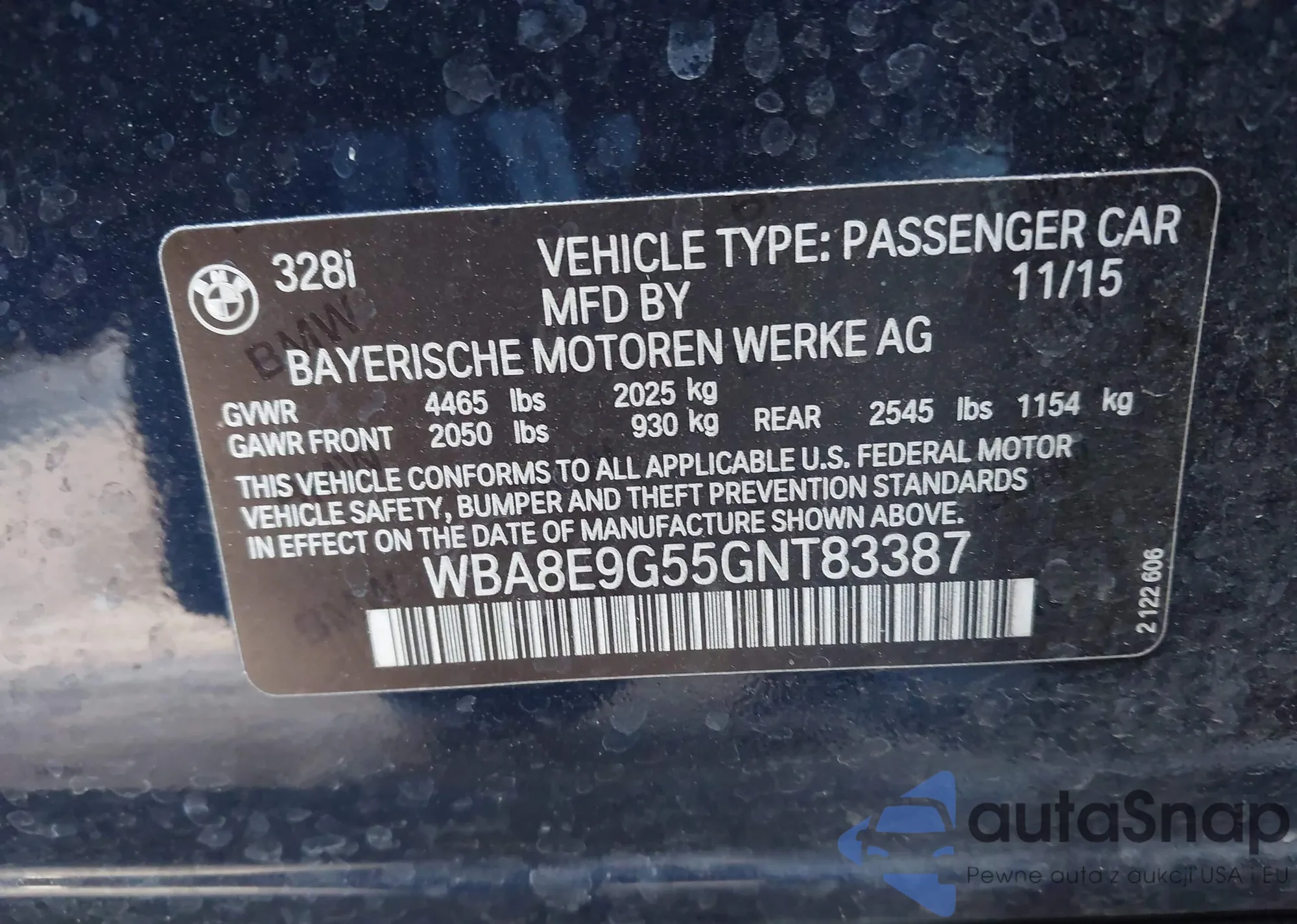 2016 BMW 328I z USA, uszkodzony, nr VIN WBA8E9G55GNT83387