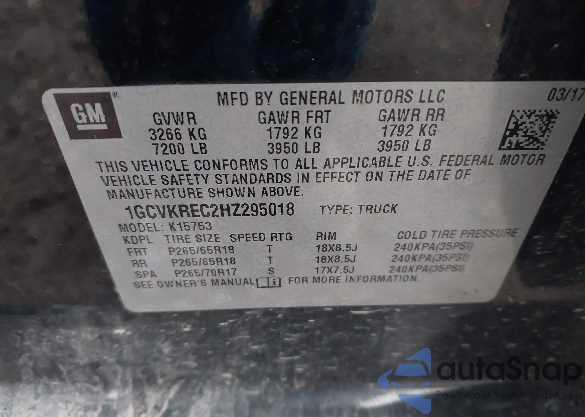 • VIN 1GCVKREC2HZ295018