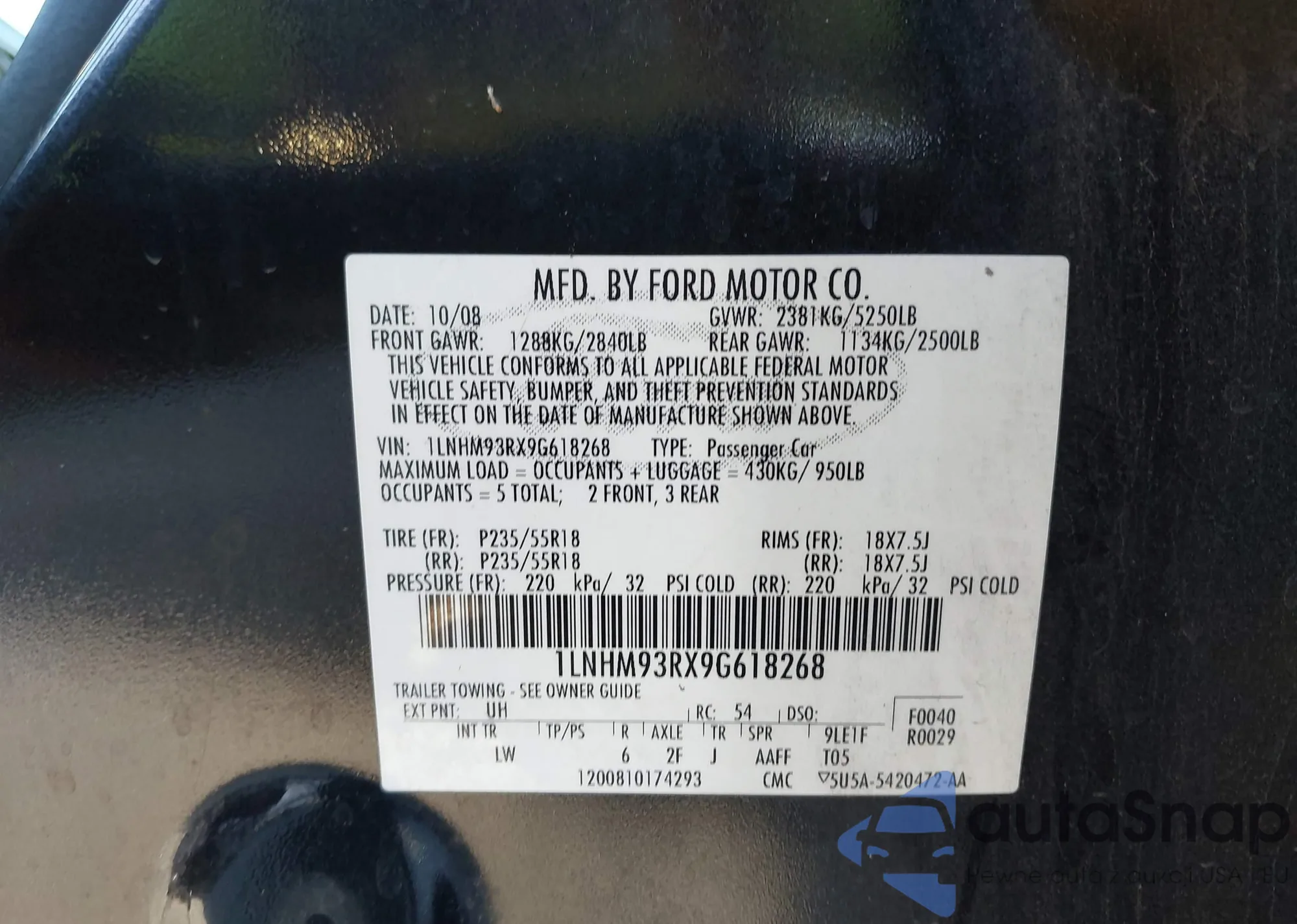 • VIN 1LNHM93RX9G618268