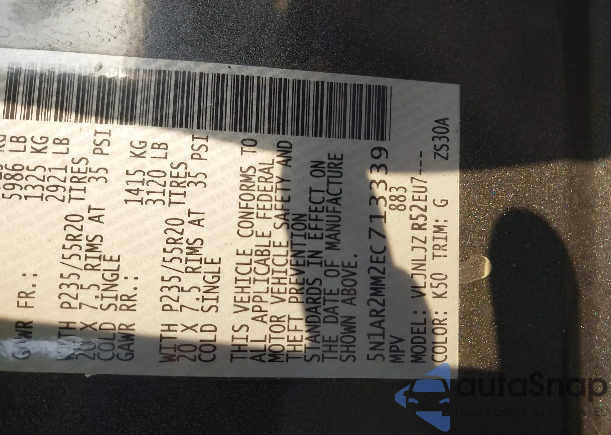 • VIN 5N1AR2MM2EC713339