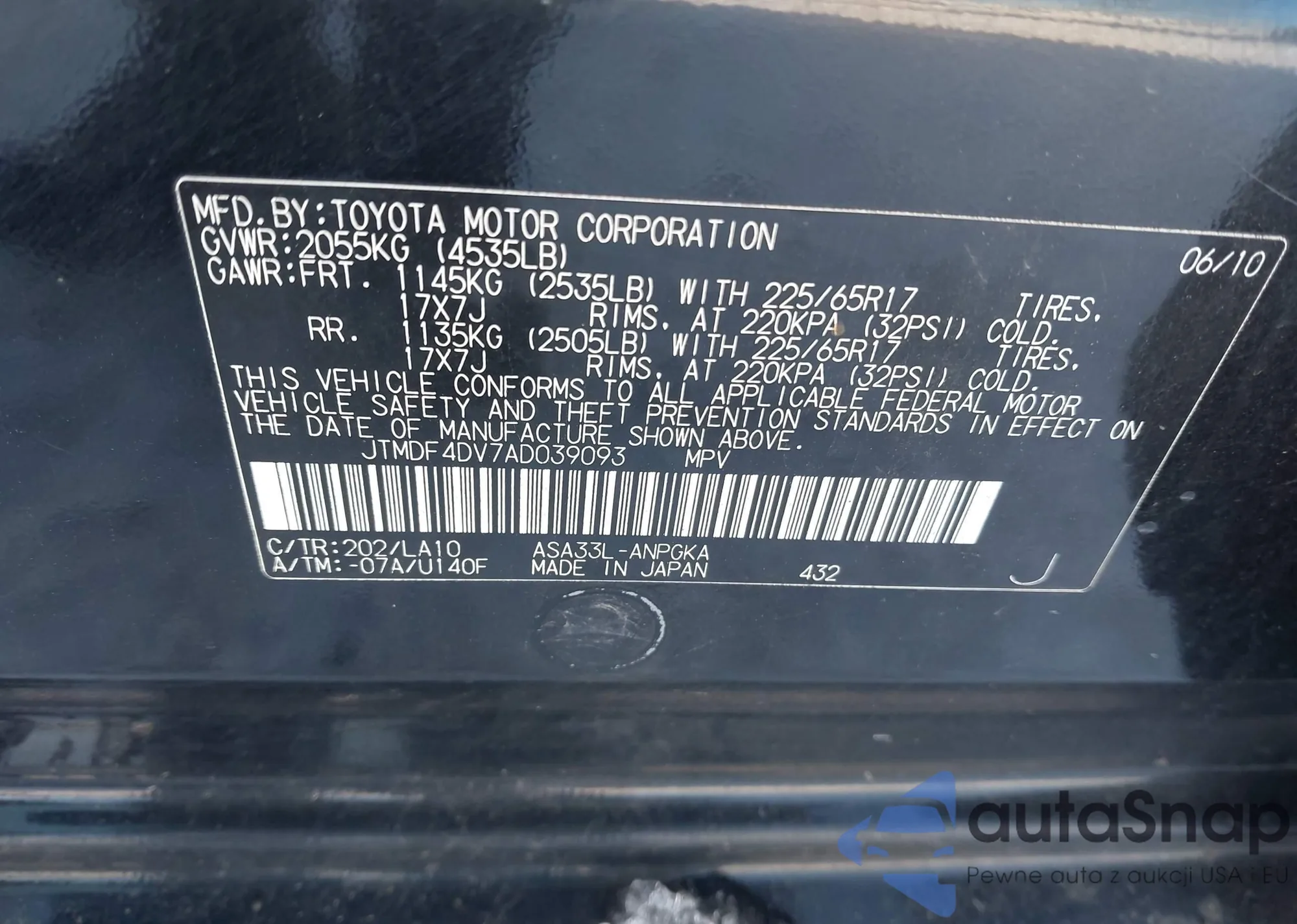 • VIN 5TDKK3DC4BS066348