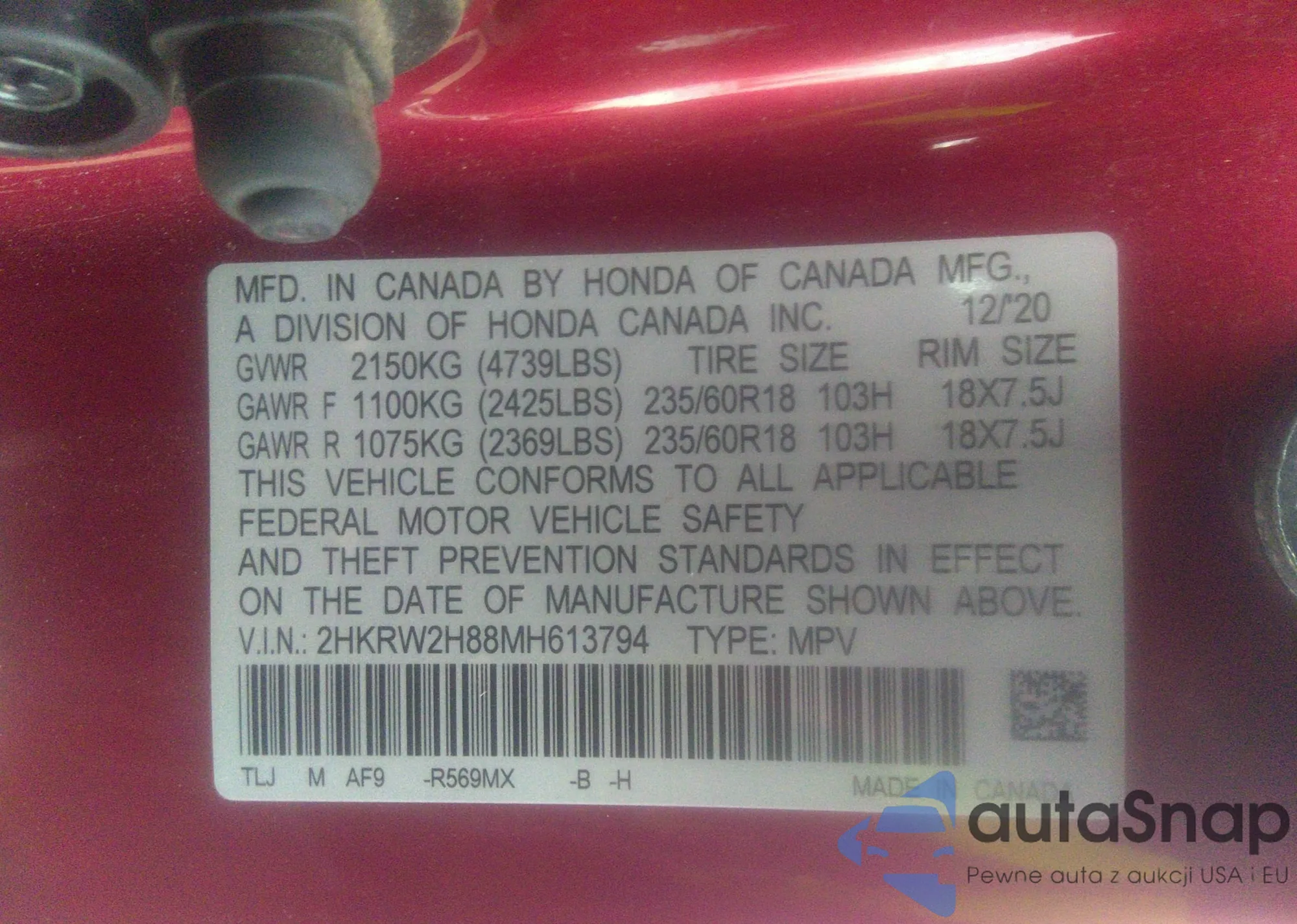 • VIN 5J6RM4H53GL001102