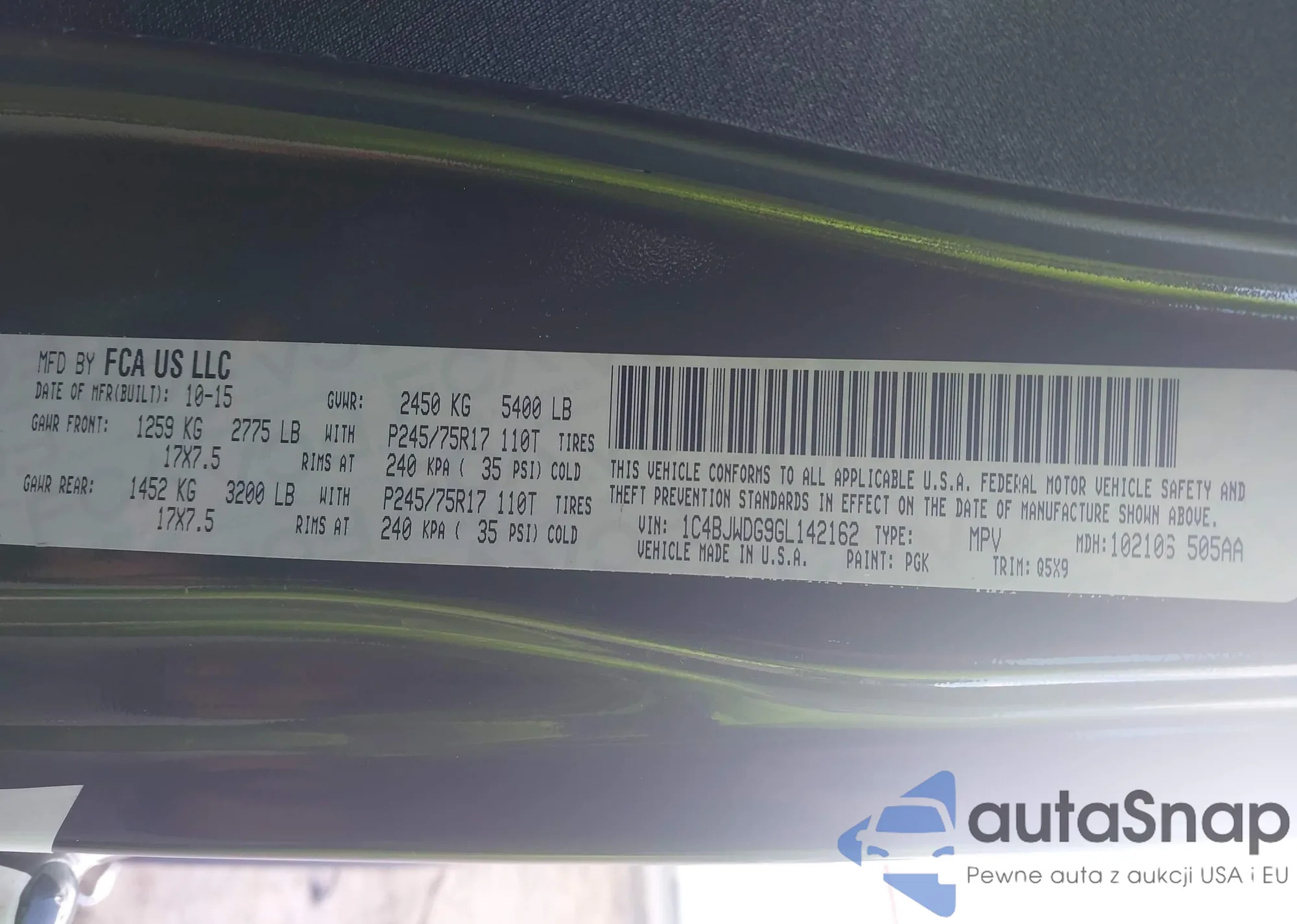 • VIN 2C3CDZFJ5GH143168