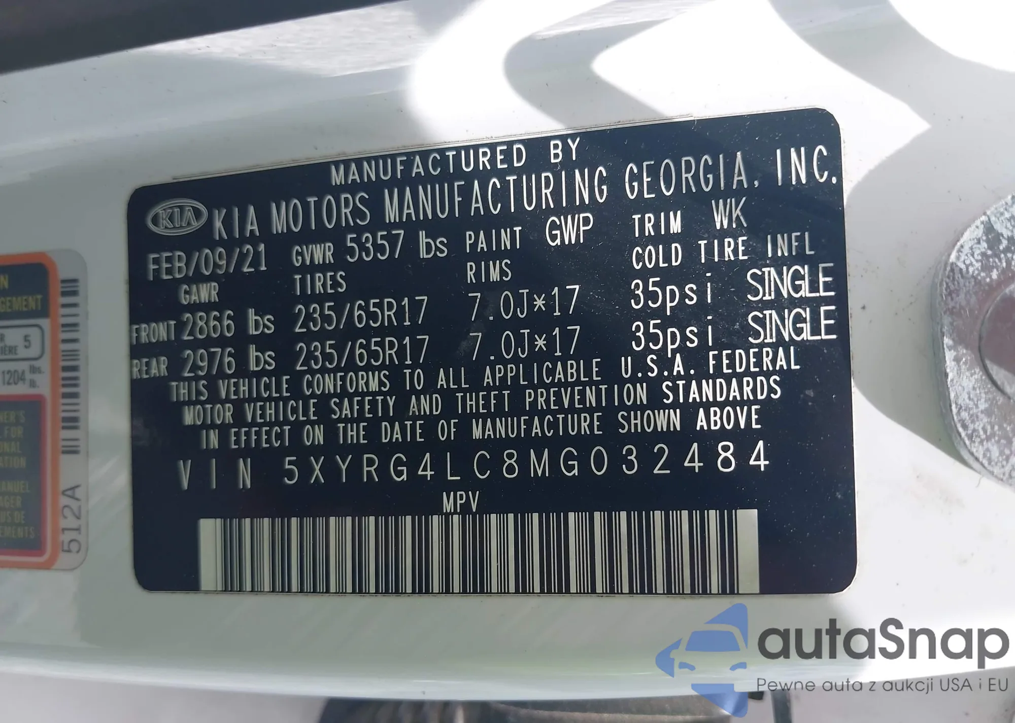 • VIN 5XYRG4LC8MG032484
