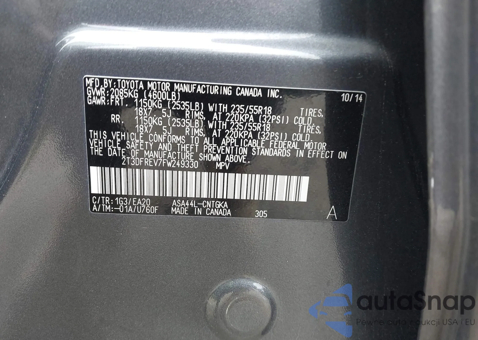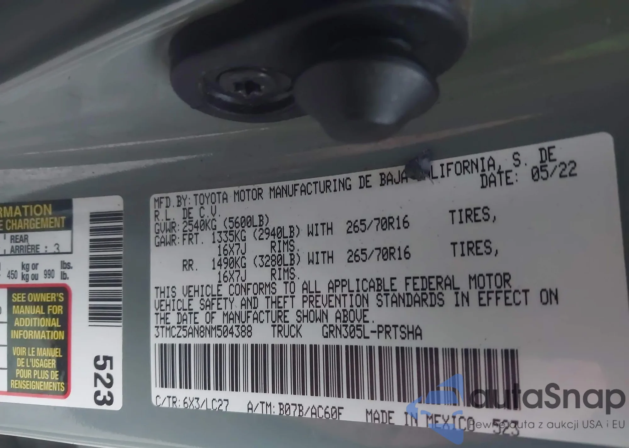• VIN 3TMCZ5AN8NM504388