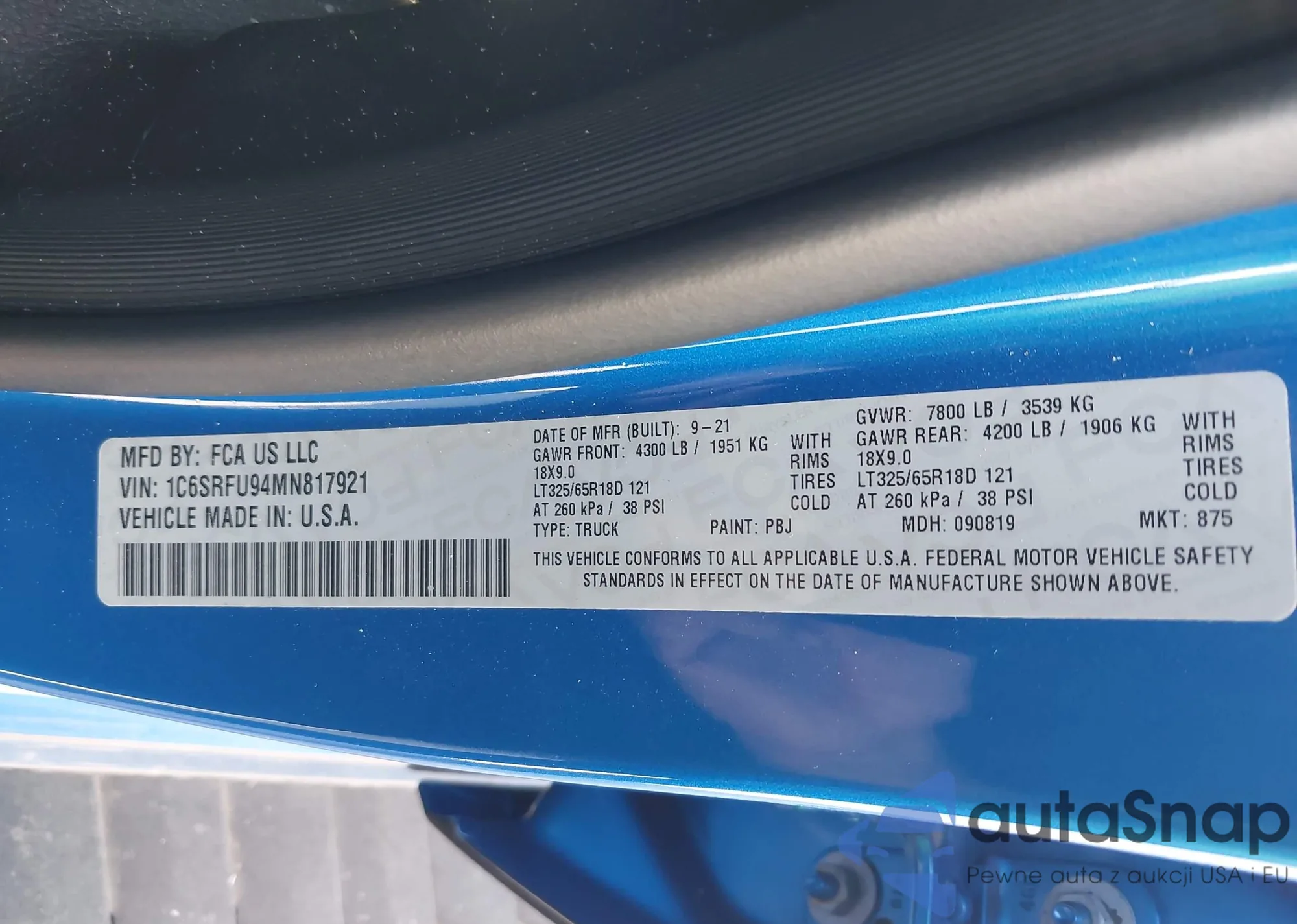 • VIN 1C6SRFU94MN817921