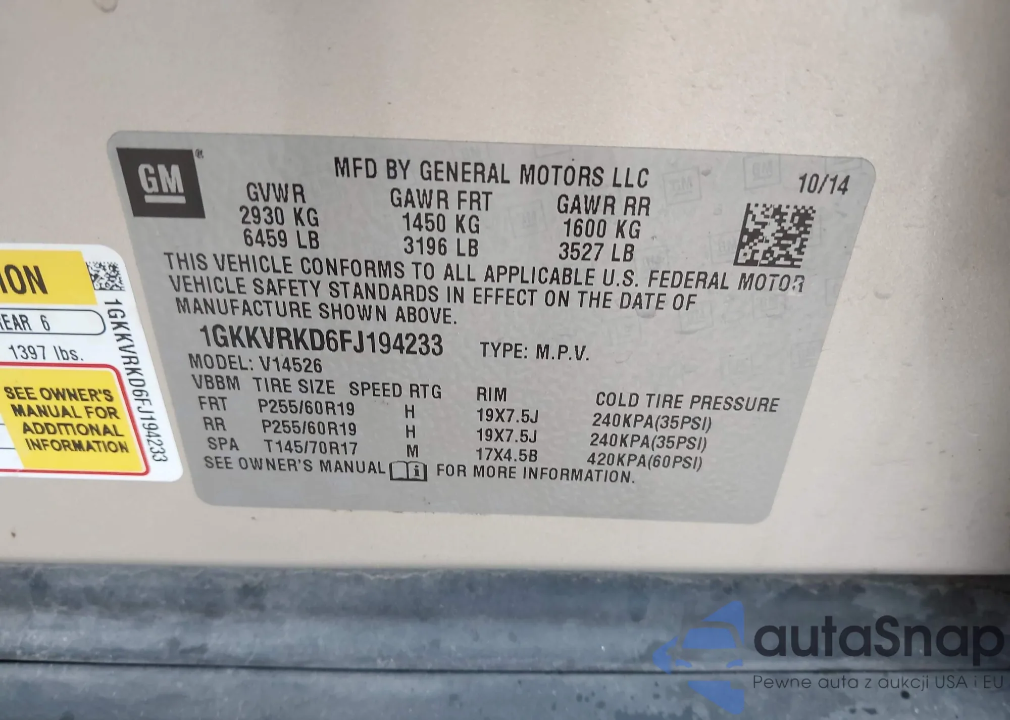 • VIN 1GKKVRKD6FJ194233