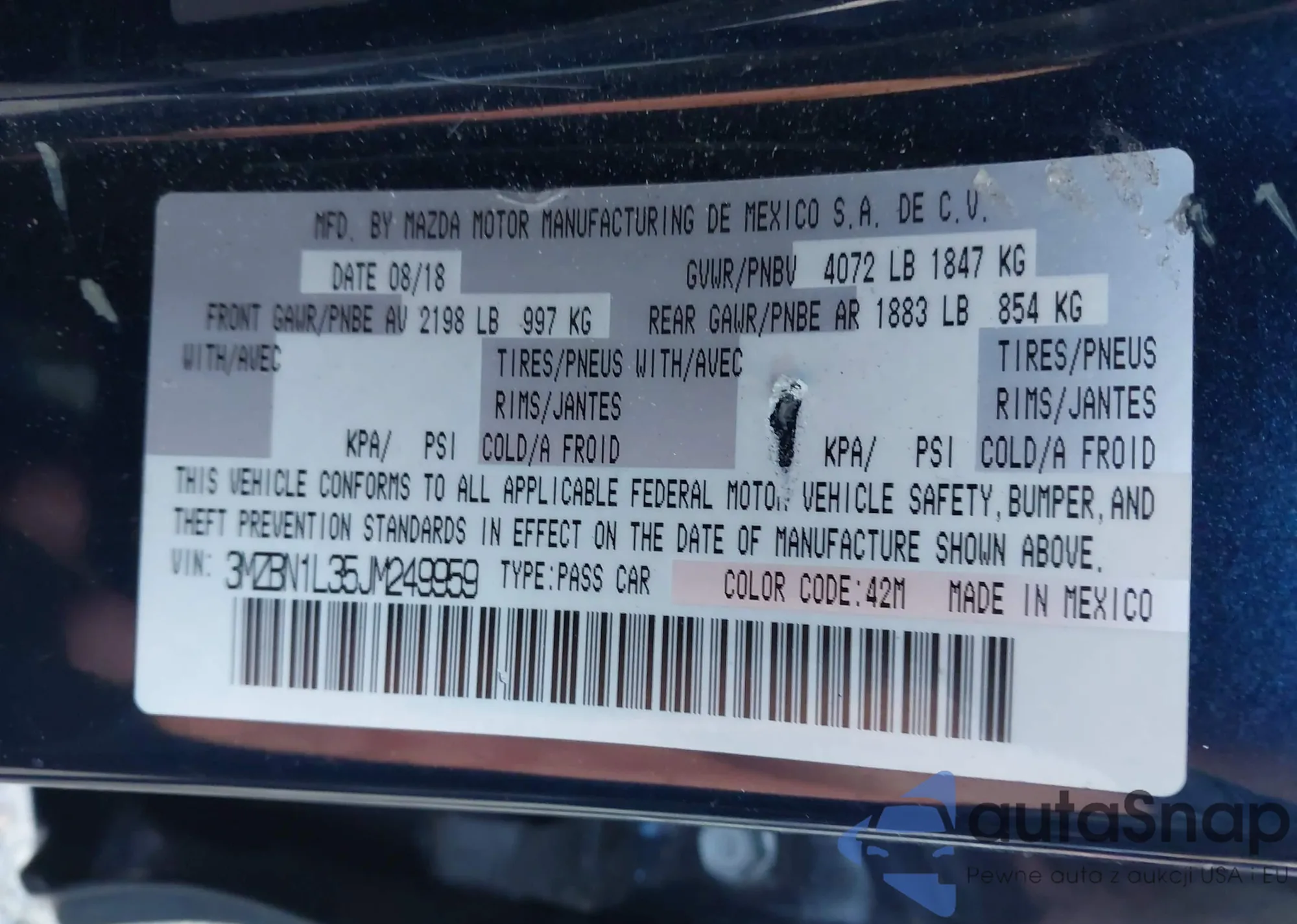 • VIN 5YJ3E1EA9PF653721