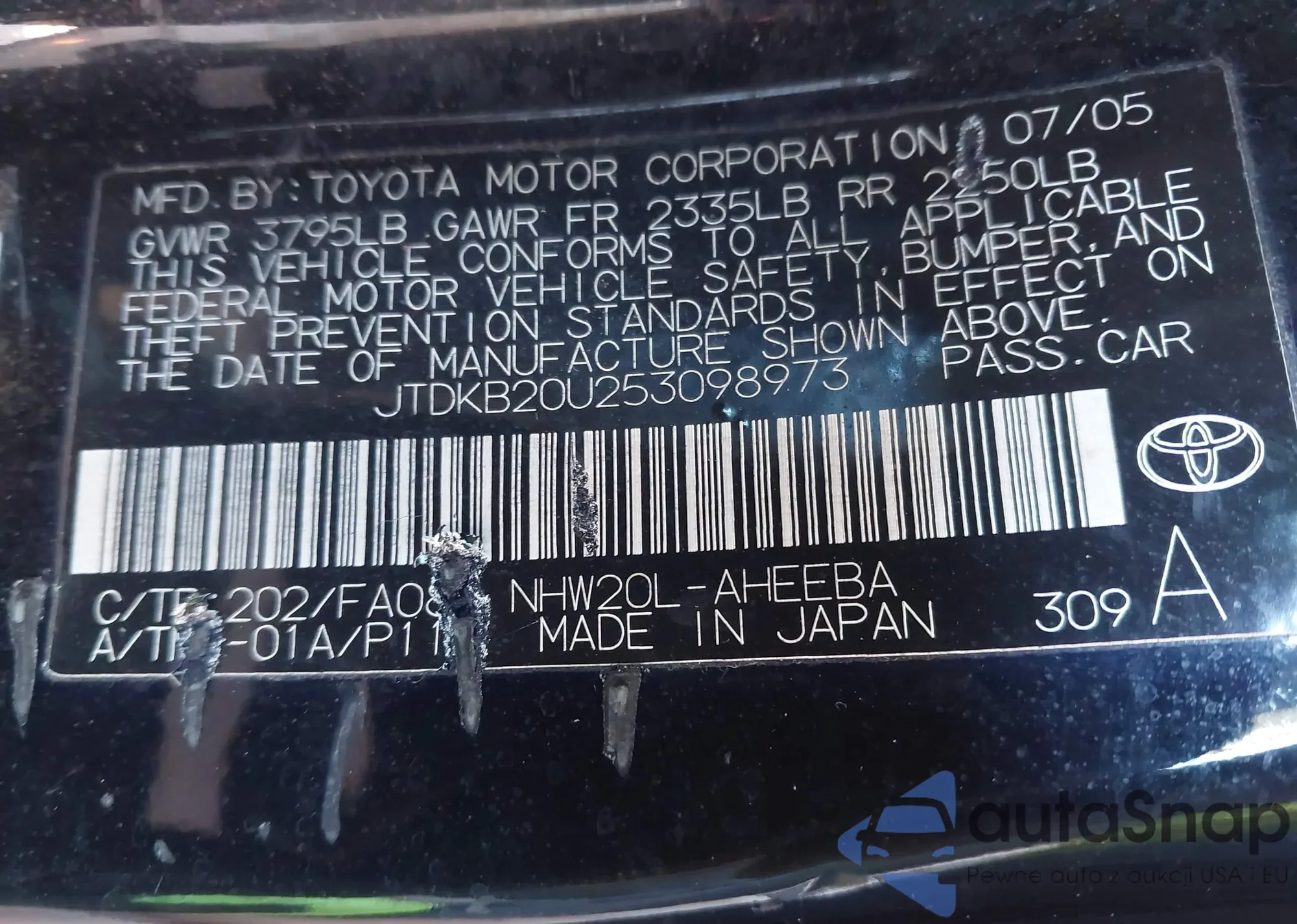 • VIN 4T1BK1EB3DU059055