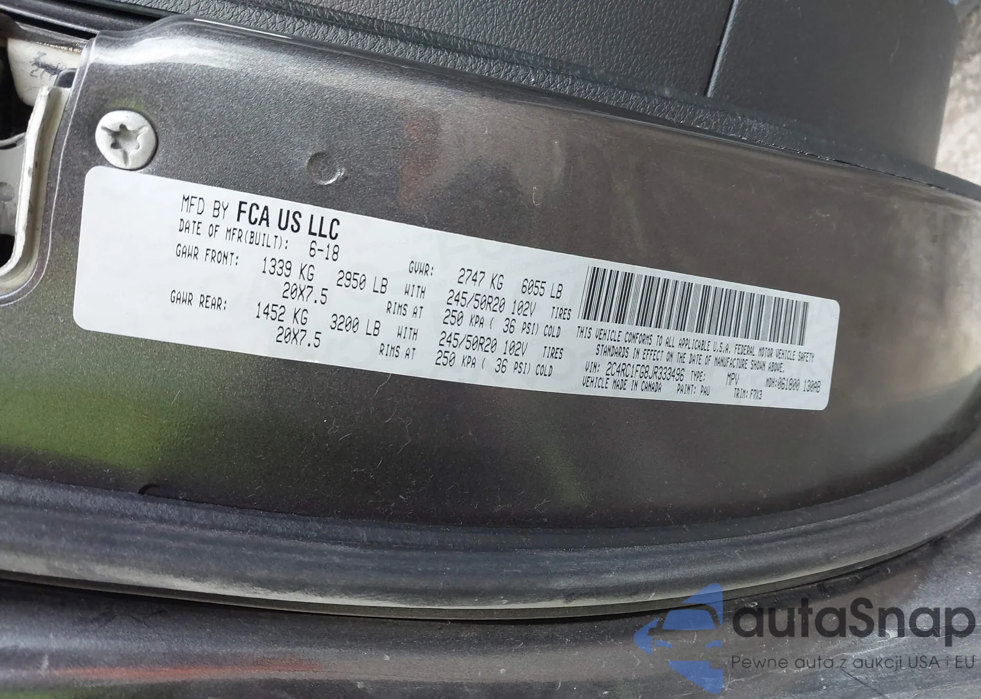 • VIN 2C4RC1FG8JR333496