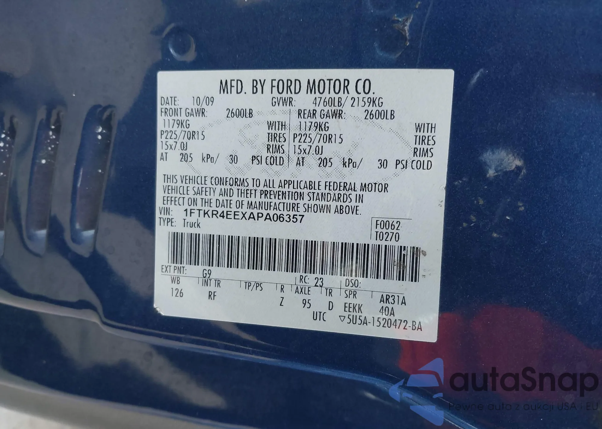 • VIN 1FTKR4EEXAPA06357
