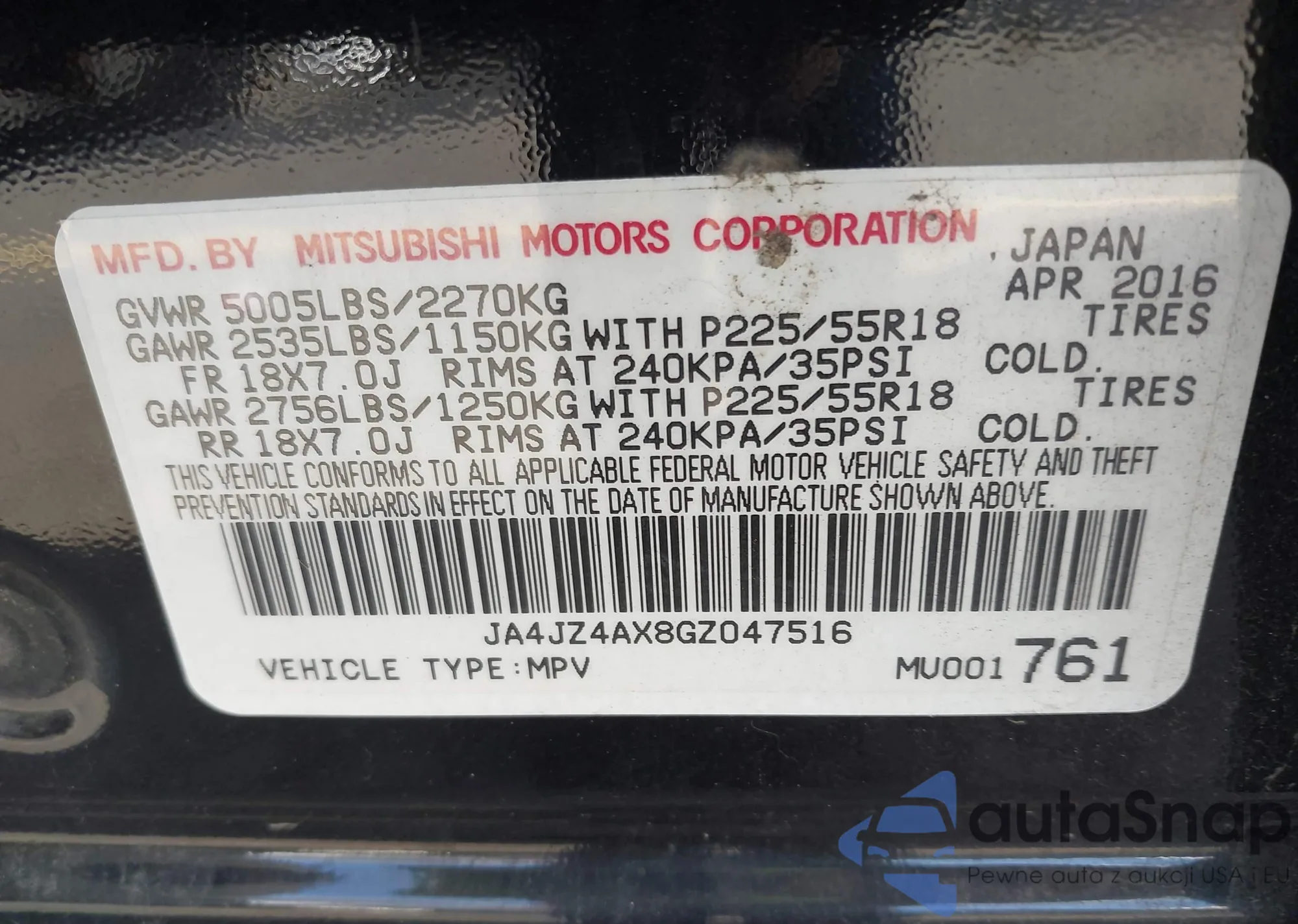 • VIN JA4JZ4AX8GZ047516