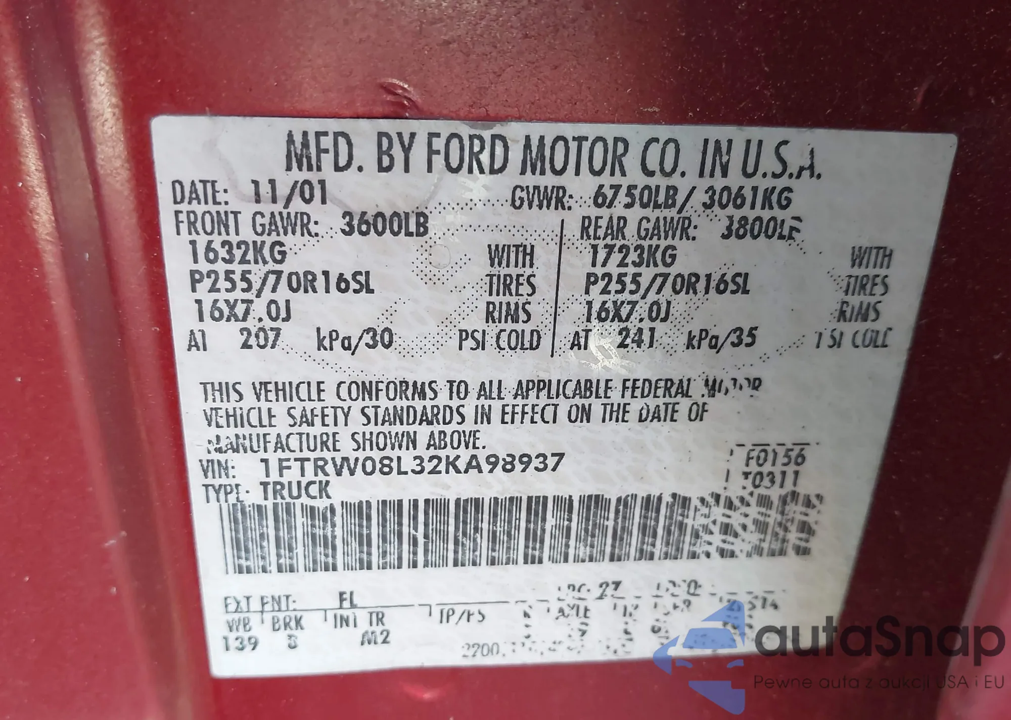 LOT: 43660804 VIN: WAUFFAFL5BN027360