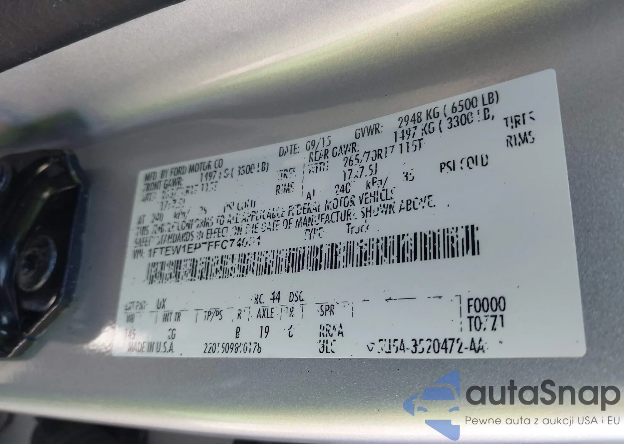 LOT: 43497576 VIN: 1FTEW1EP7FFC74091