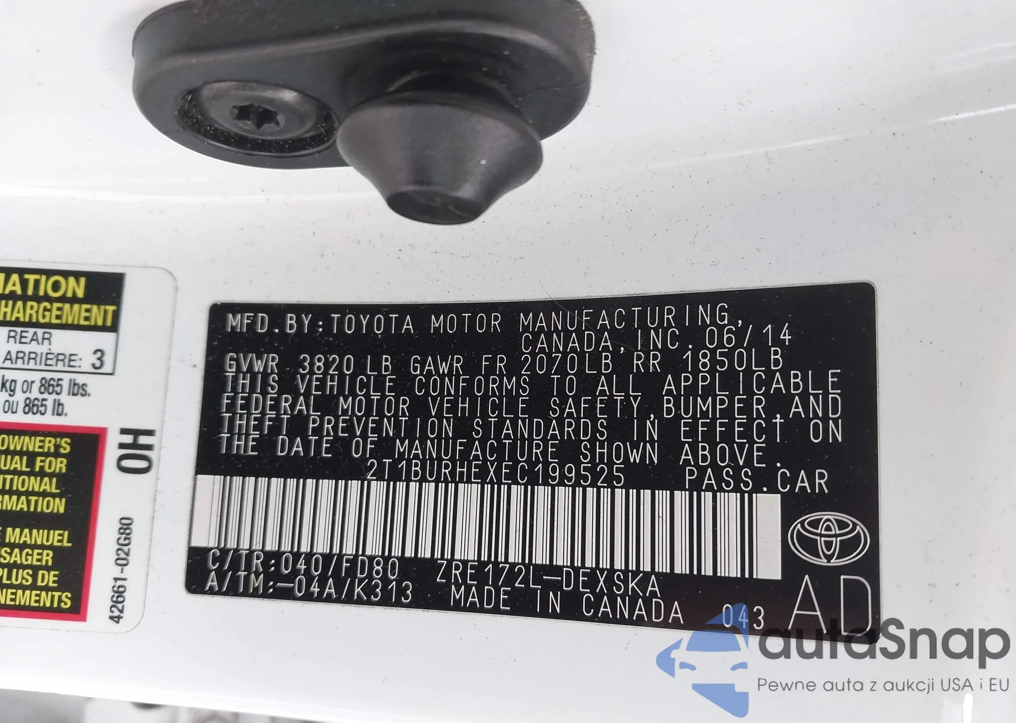 • VIN 2T1BURHEXEC199525