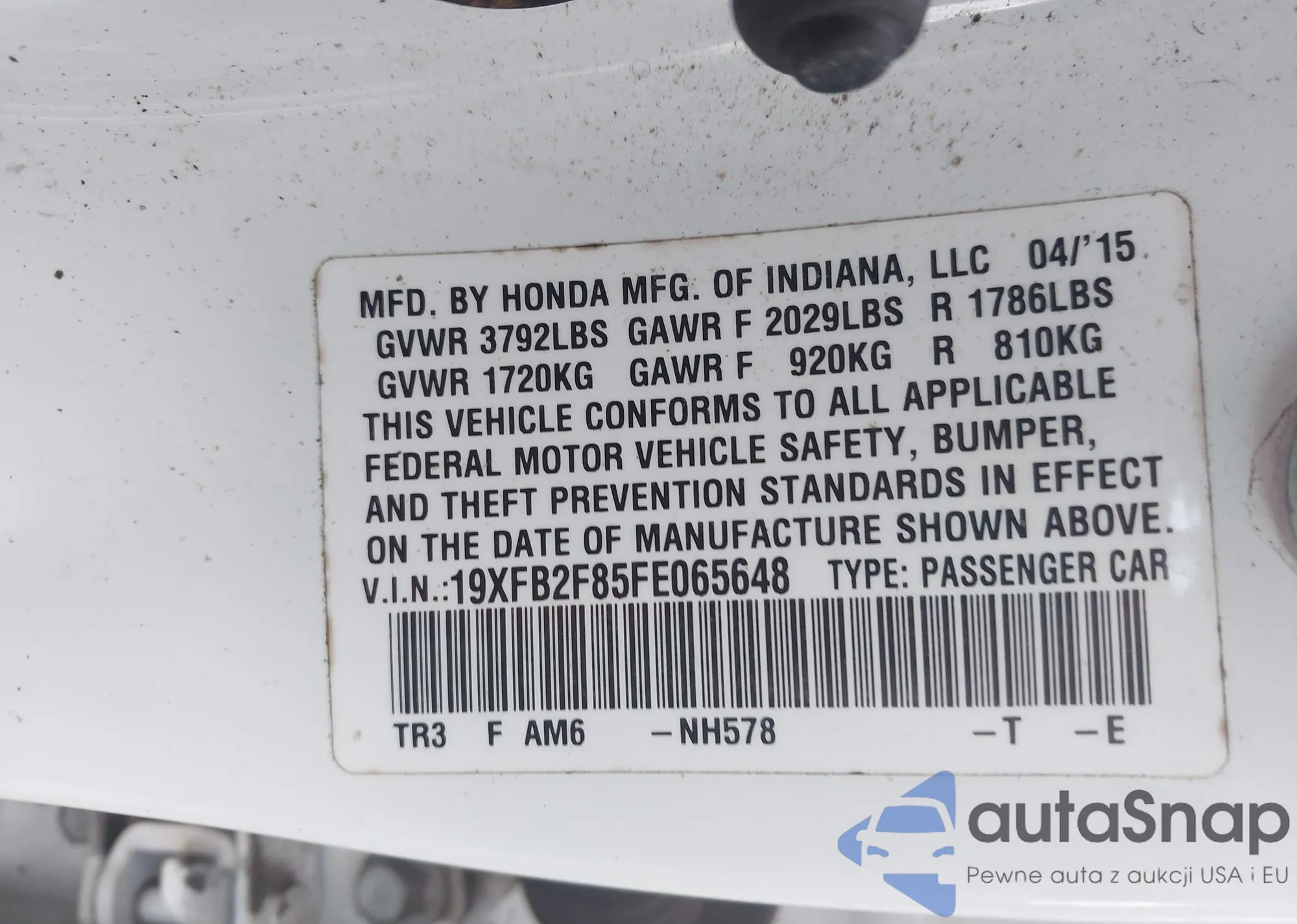 LOT: 43537286 VIN: KMHDH4AE5FU347980