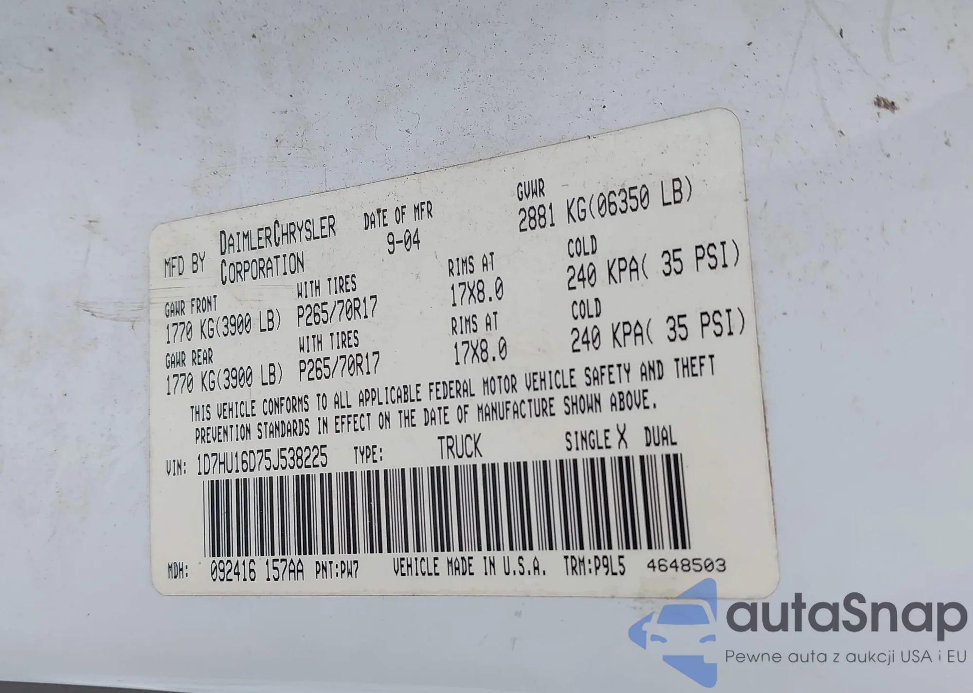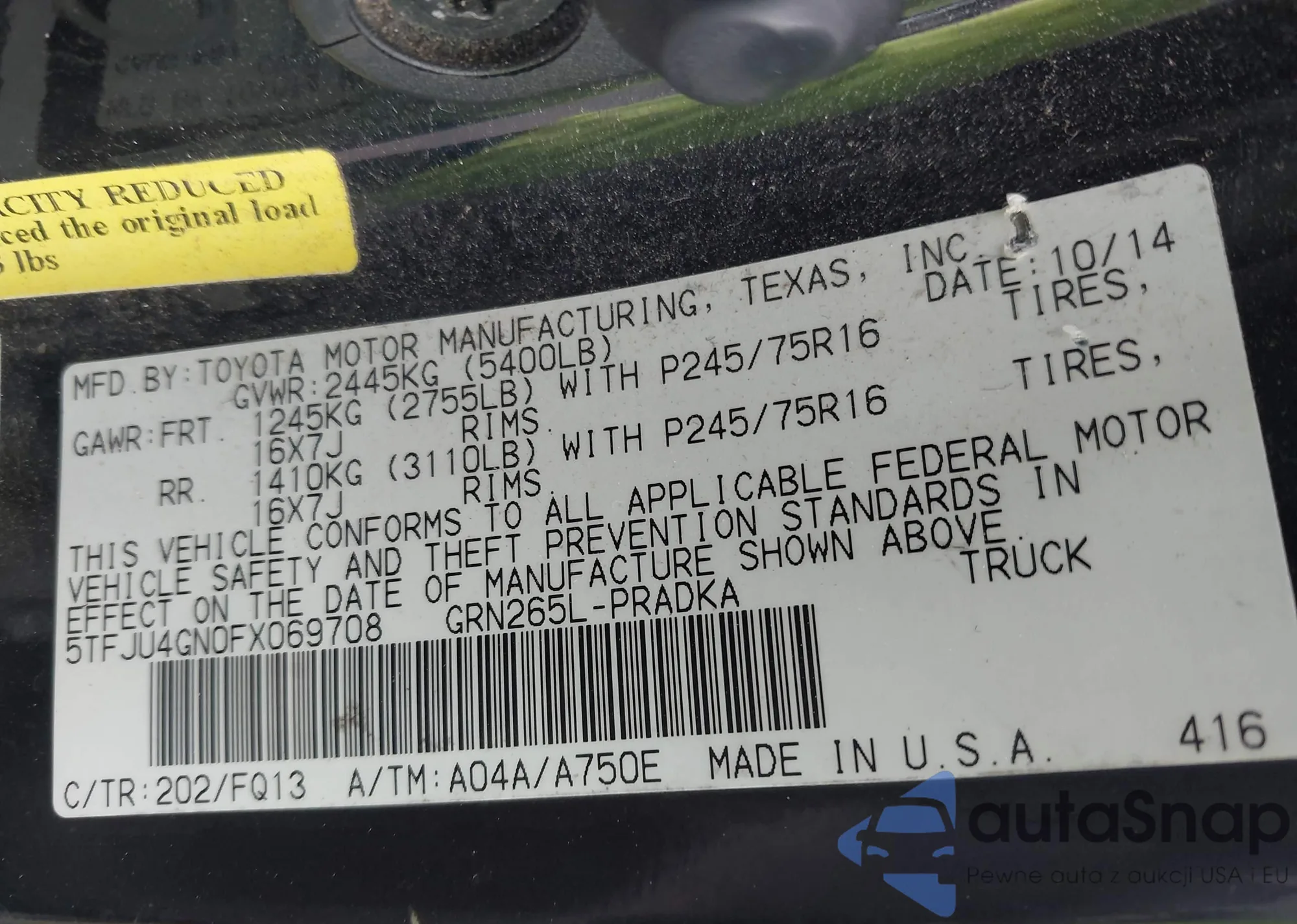 • VIN 5TFJU4GN0FX069708