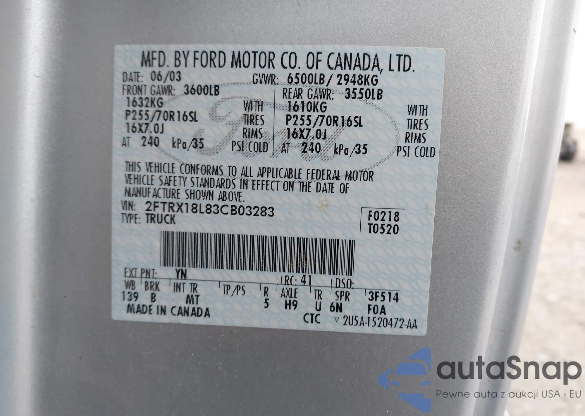LOT: 43740923 VIN: 5TFJU4GN0FX069708