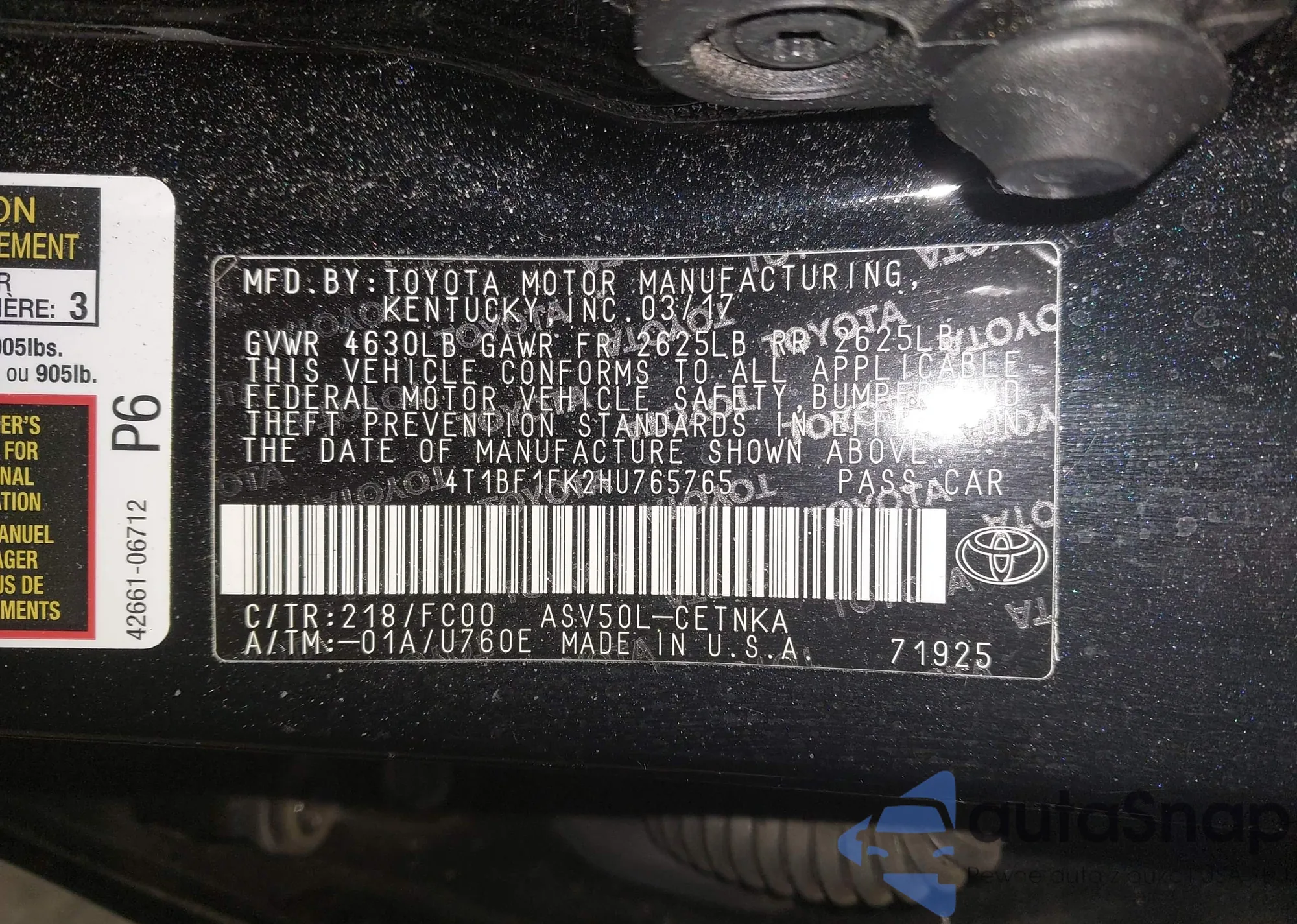 LOT: 43625209 VIN: JTDBT923X71170527