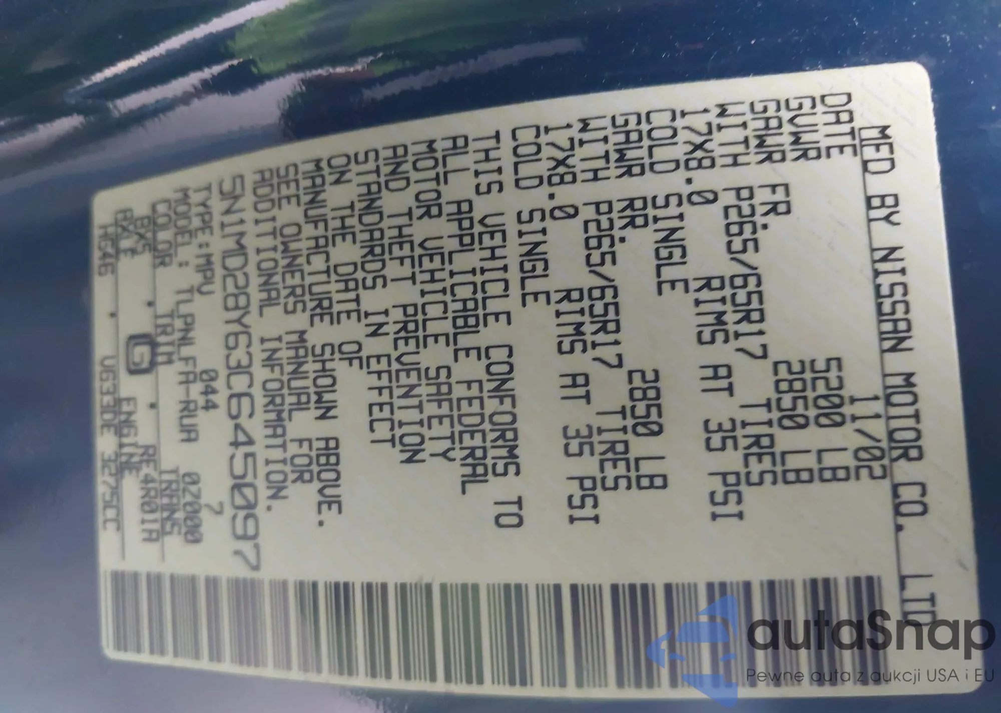 • VIN 5N1MD28Y63C645097