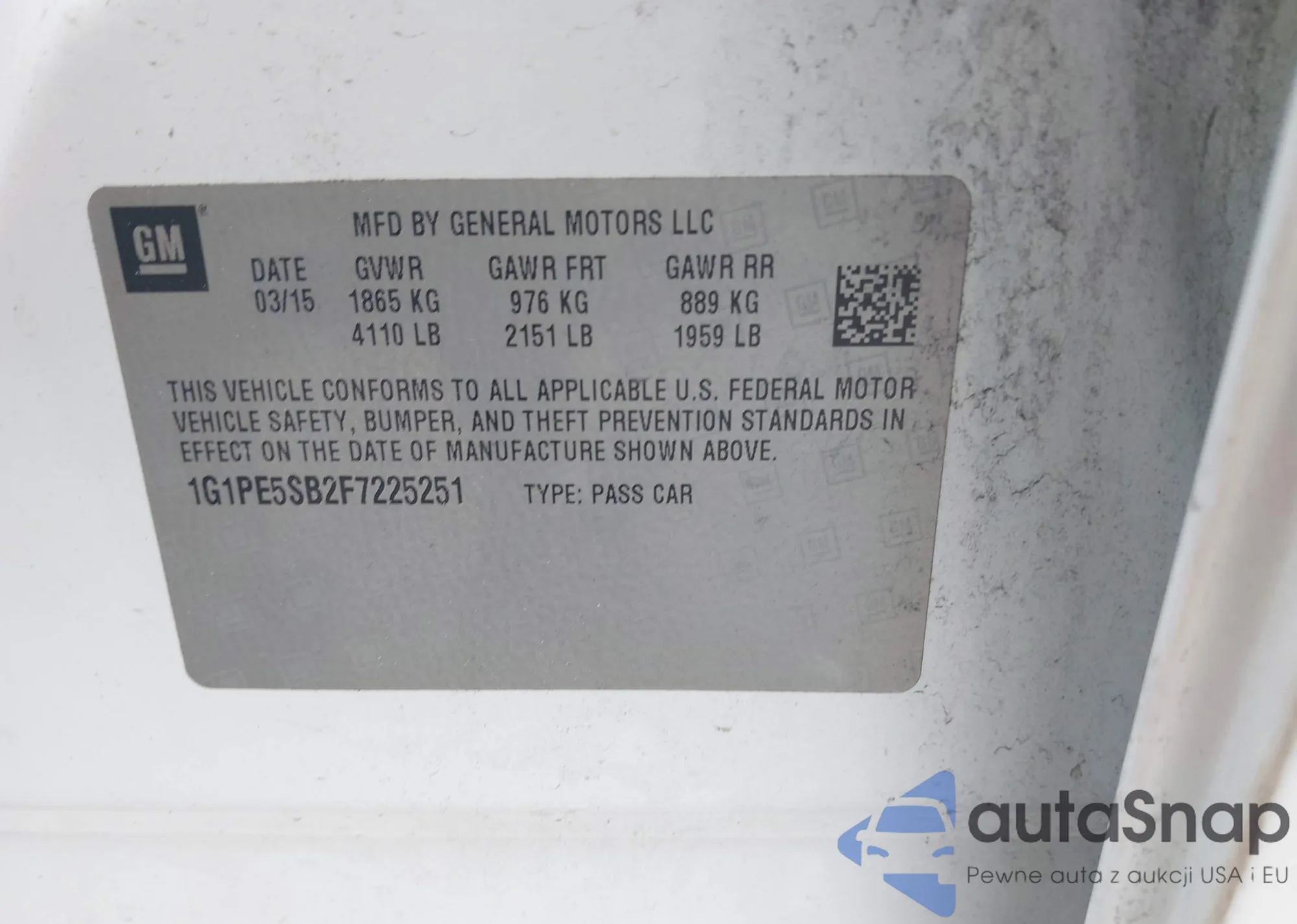 LOT: 40219269 VIN: 1G1PE5SB2F7225251