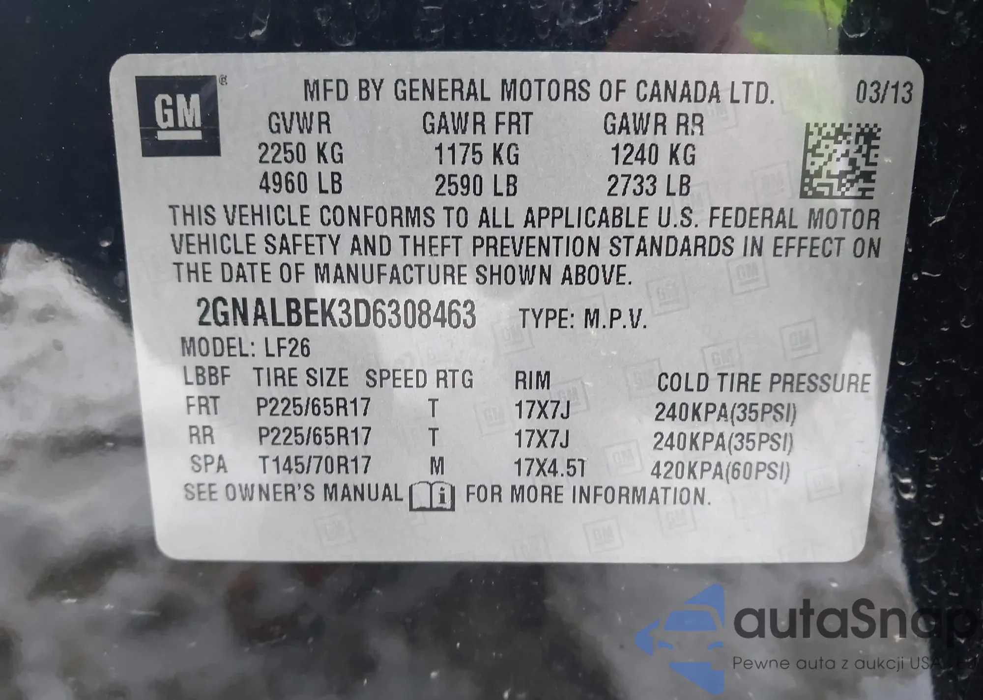 • VIN 2GNALBEK3D6308463