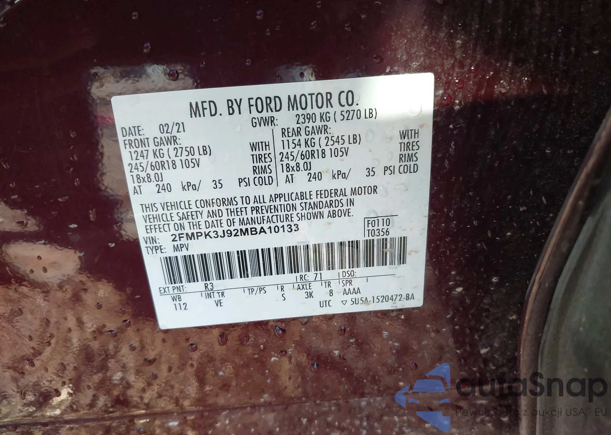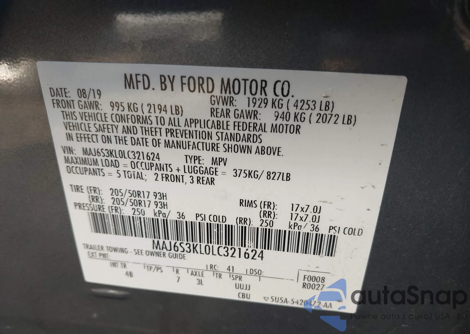 • VIN MAJ6S3KL0LC321624