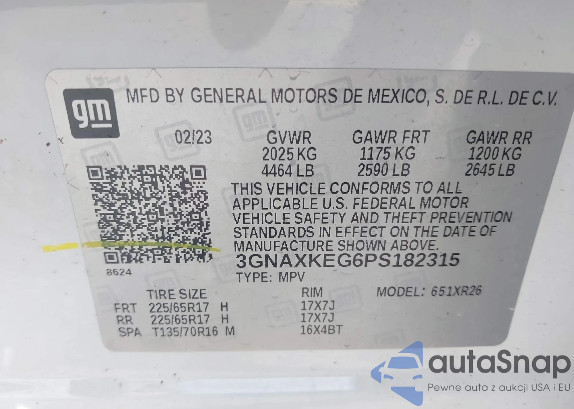LOT: 43598937 VIN: 3GNAXKEG6PS182315