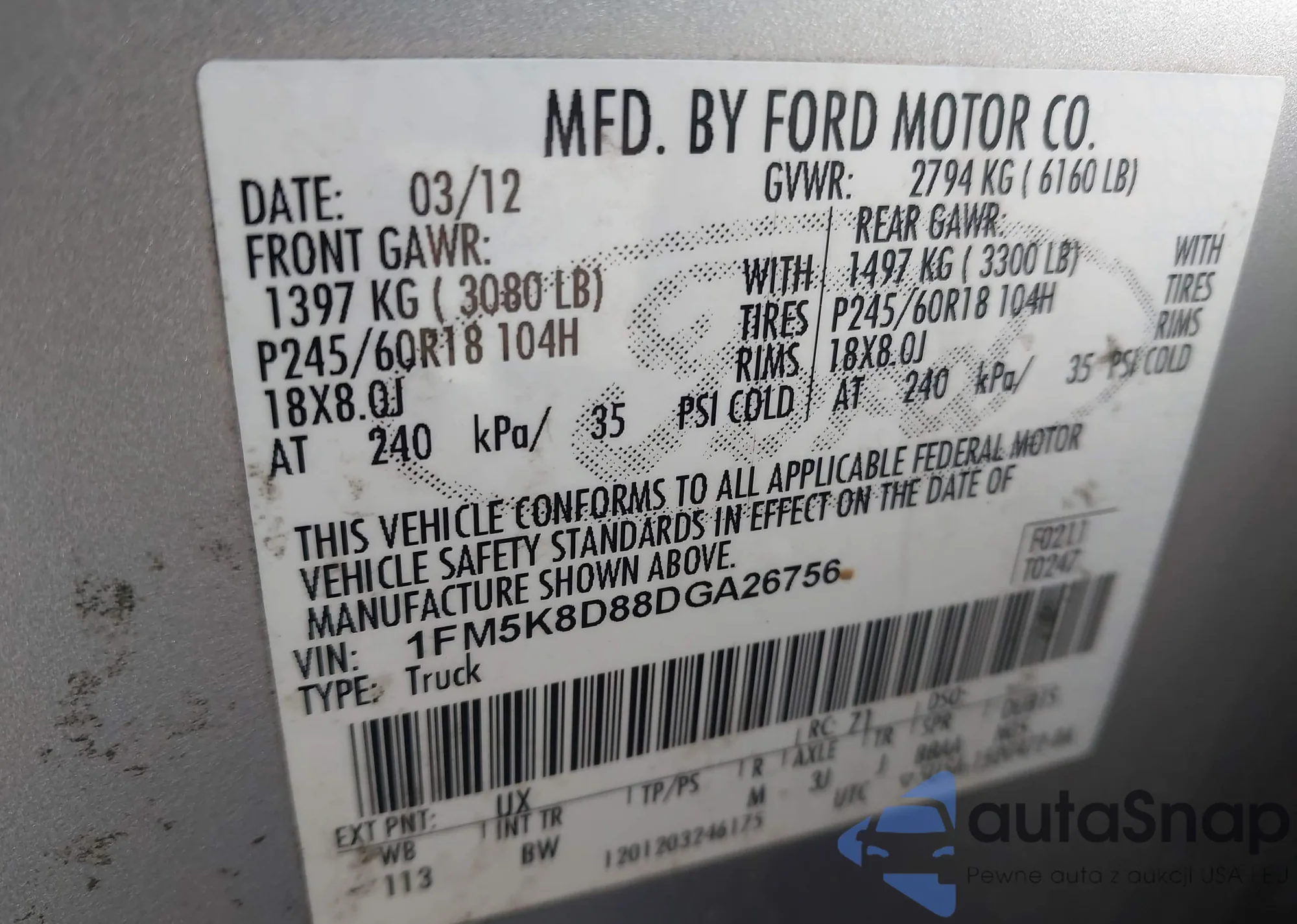 • VIN 1FM5K8D88DGA26756