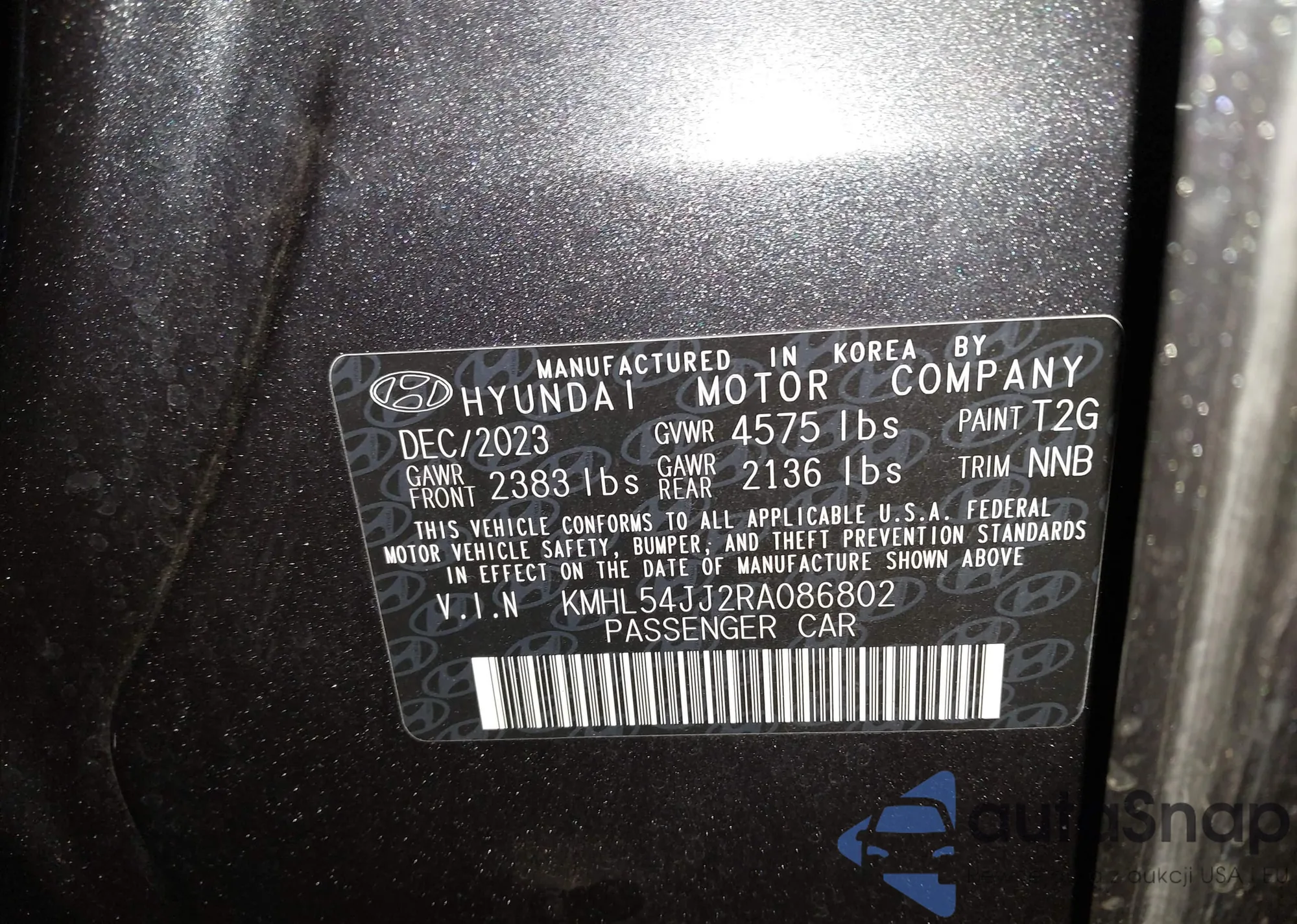 • VIN KMHL54JJ2RA086802