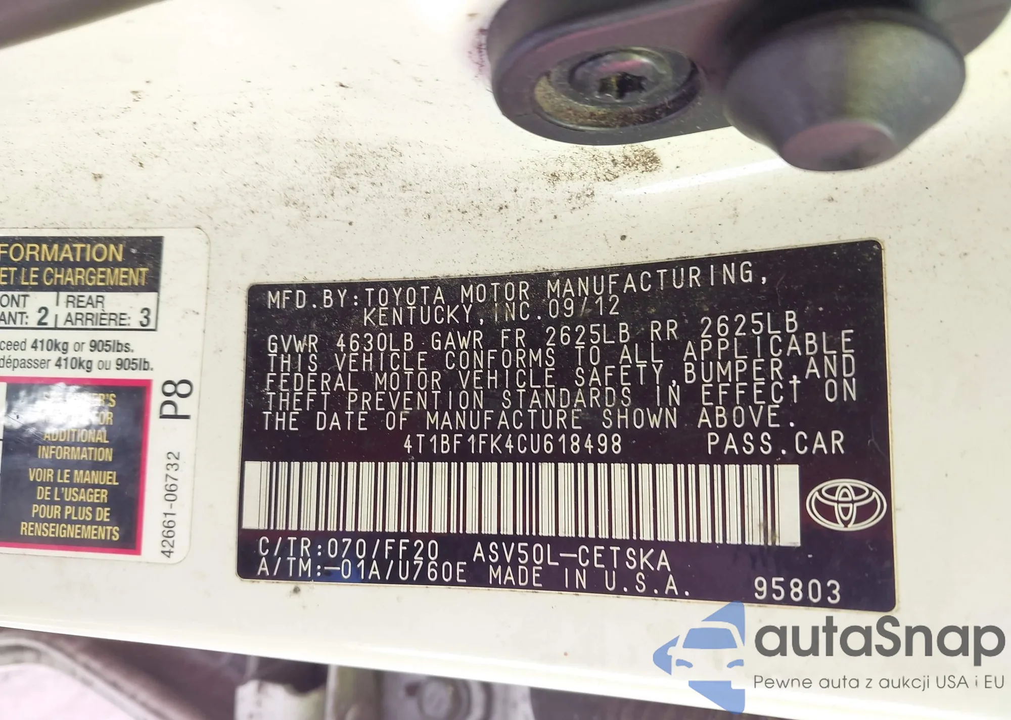 LOT: 43710496 VIN: 4T1BE46K08U198251