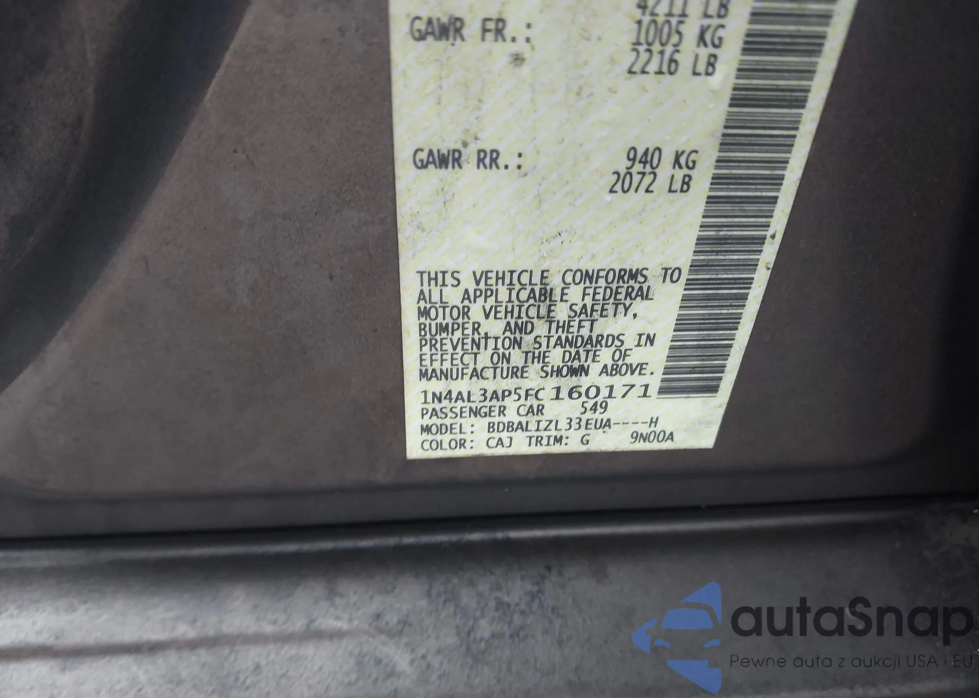 • VIN 1N4AL3AP5FC160171