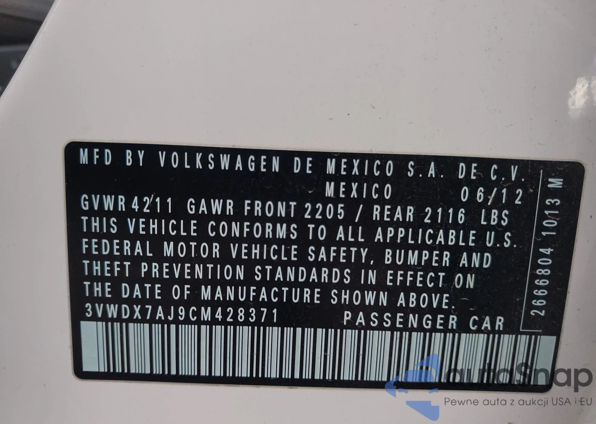 • VIN 3VWDX7AJ9CM428371
