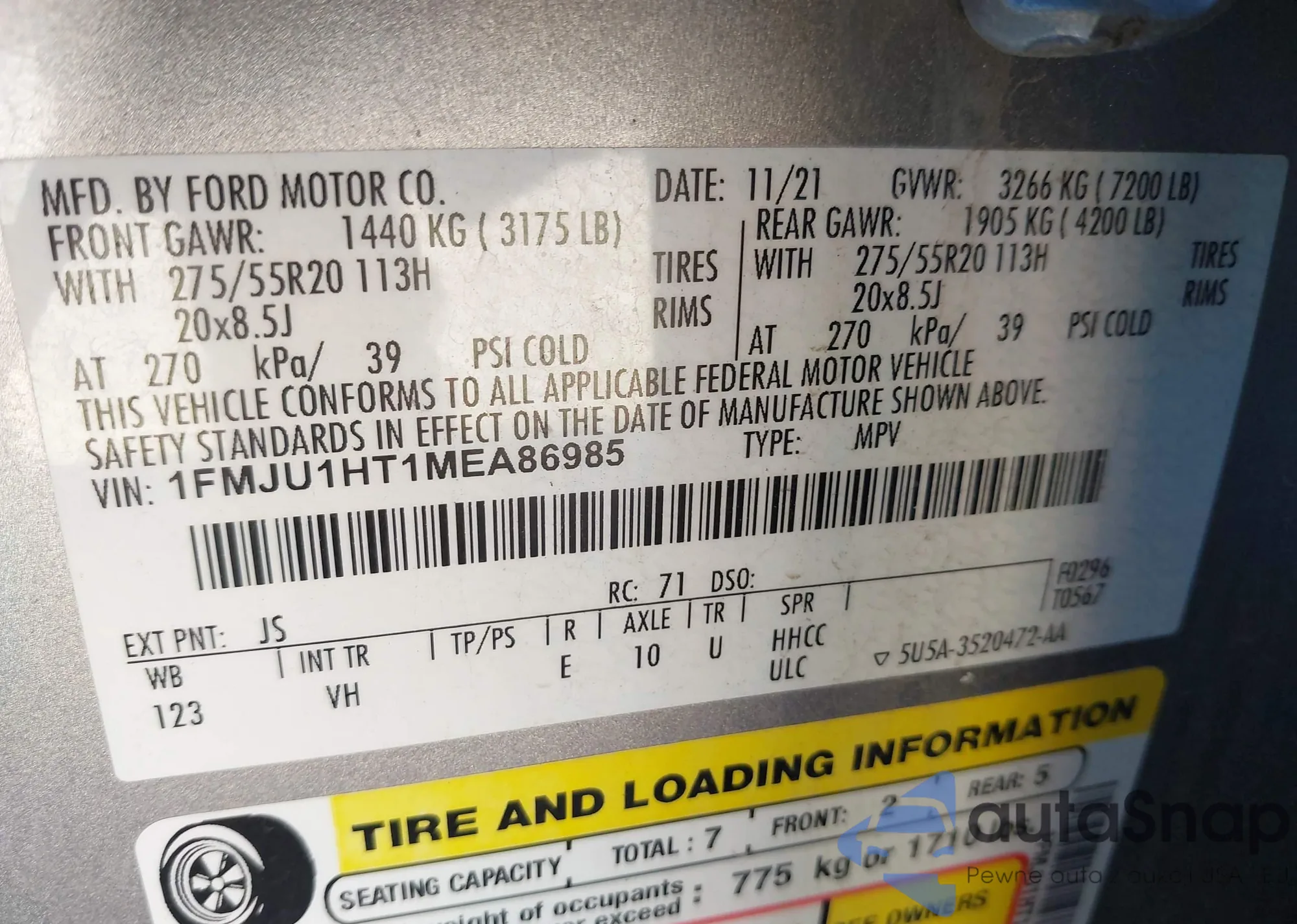 • VIN 1FMJU1HT1MEA86985