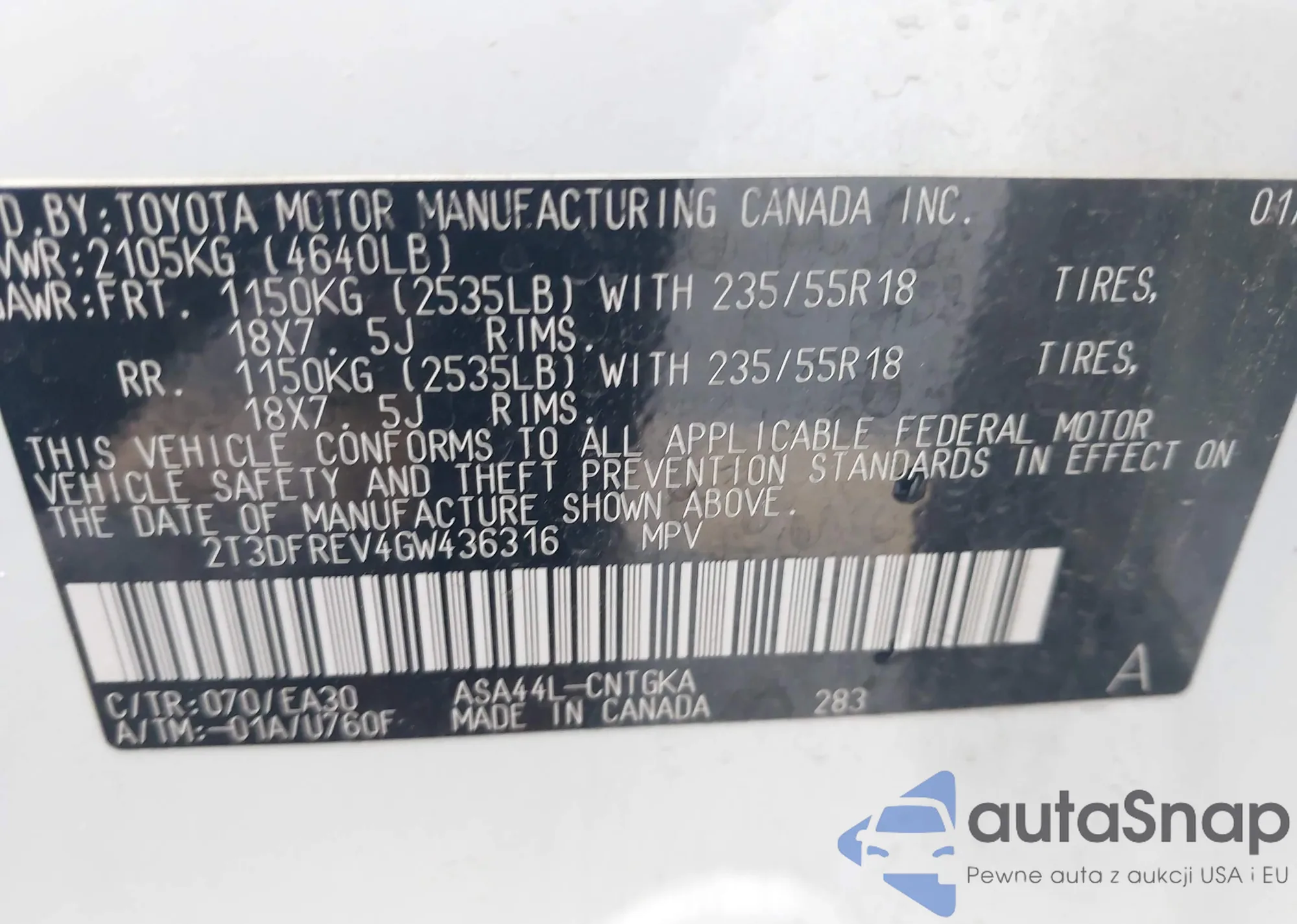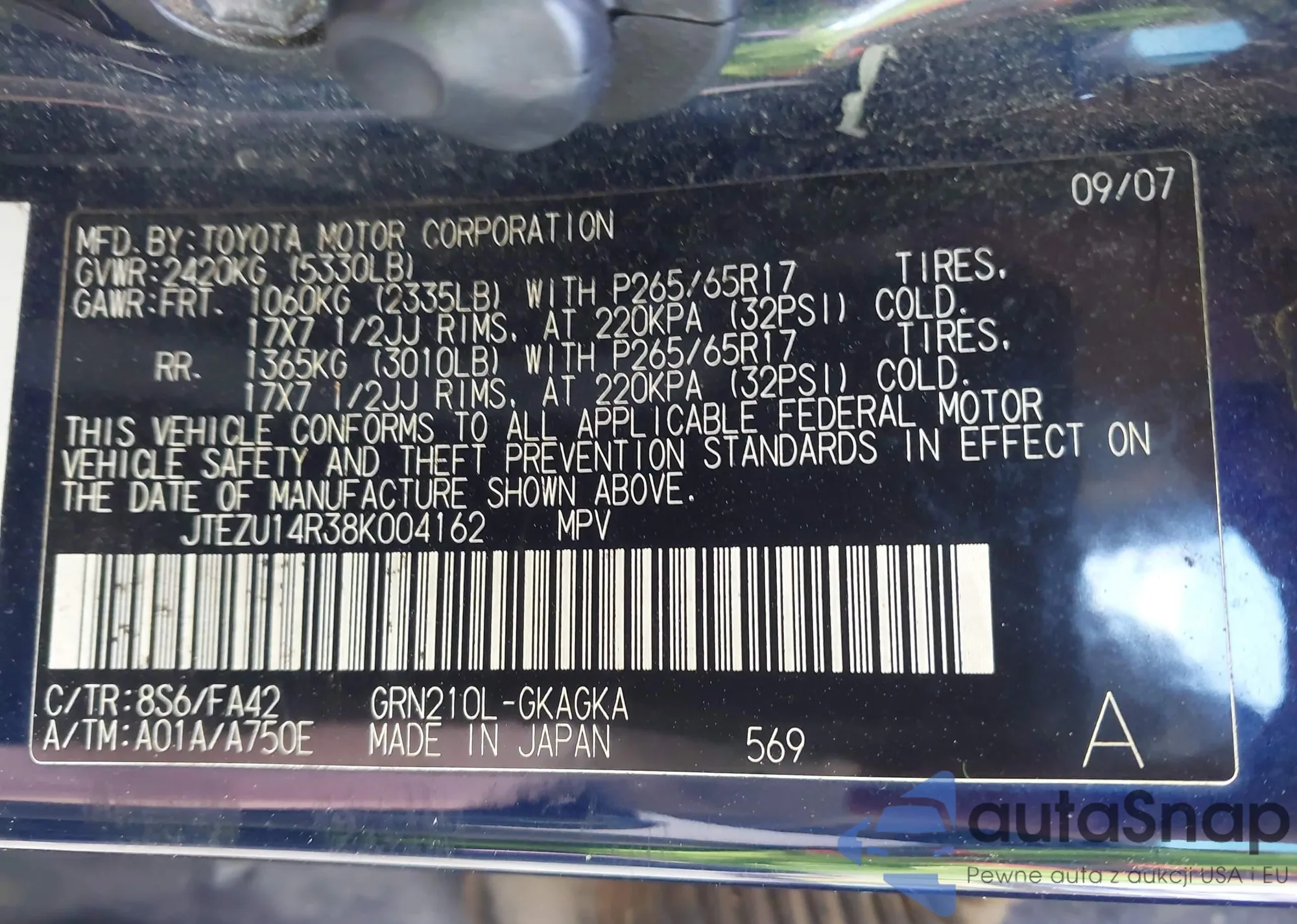 • VIN 4T1BF3EK5BU597558