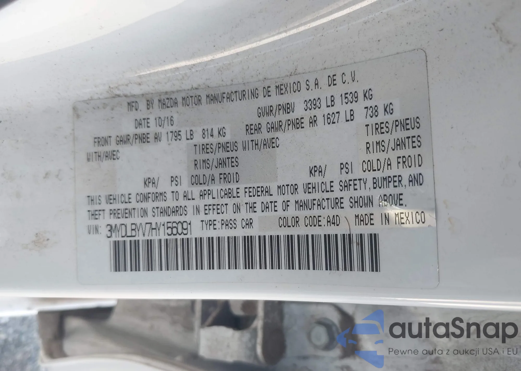 LOT: 43774046 VIN: 3MYDLBYV7HY156091