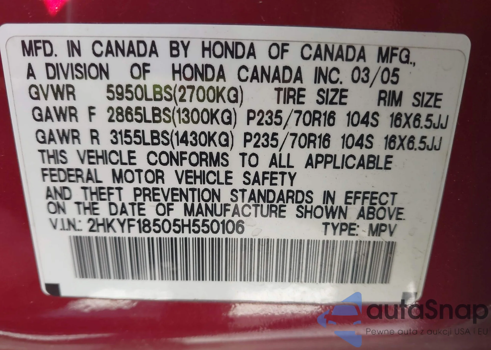 • VIN 4T1B31HK8KU006177