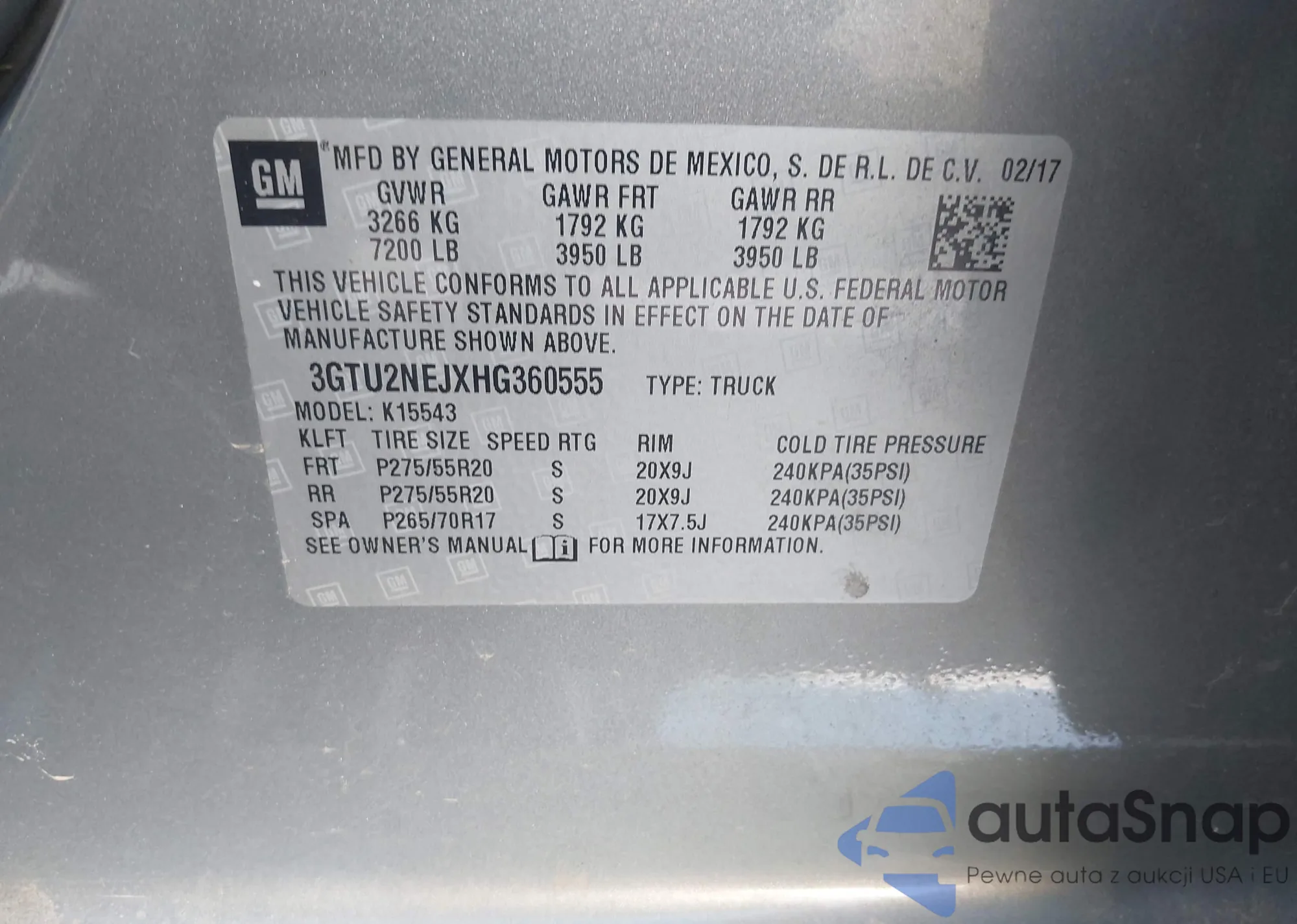 • VIN 3GTU2NEJXHG360555