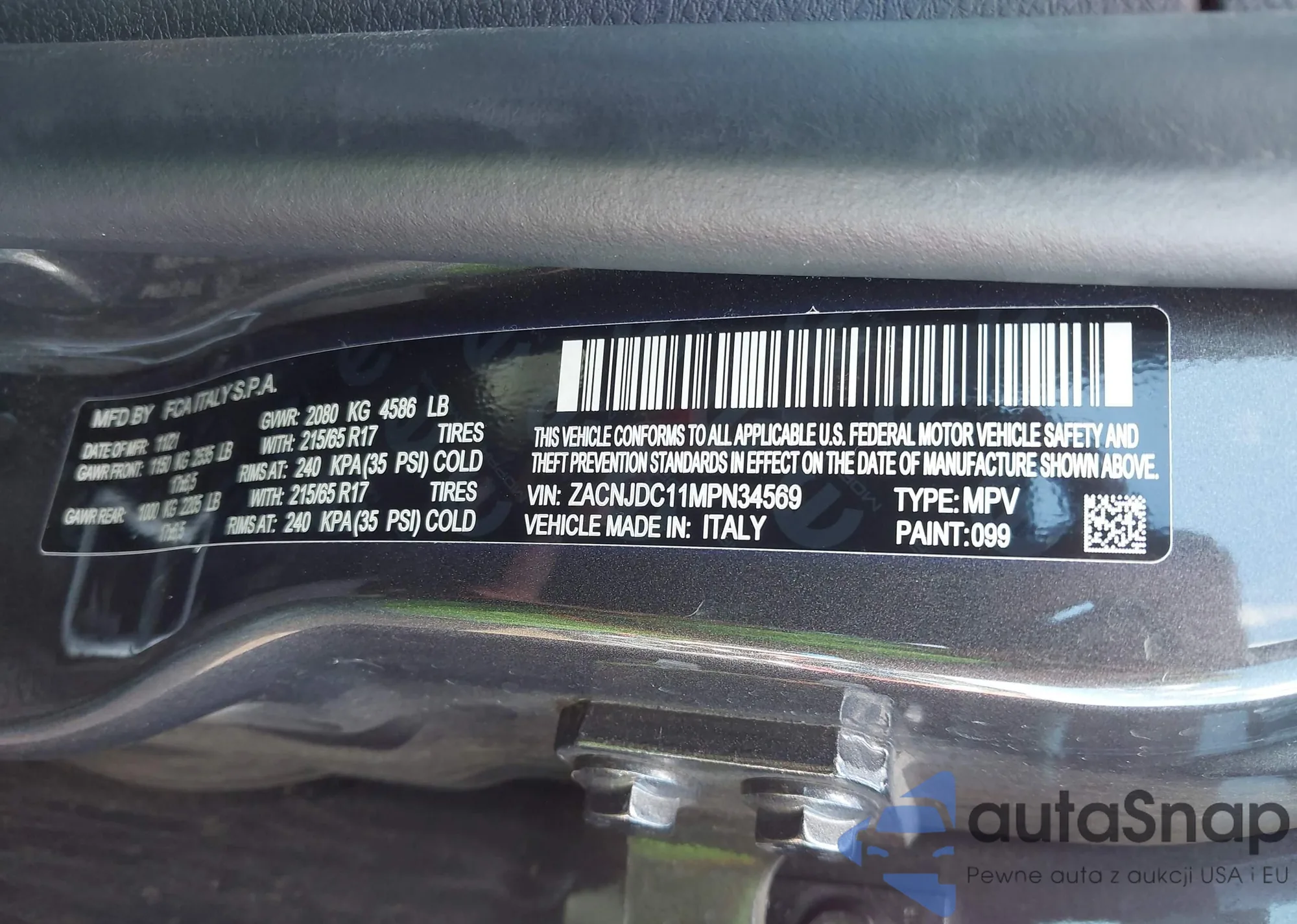 LOT: 43749703 VIN: ZACNJDC11MPN34569