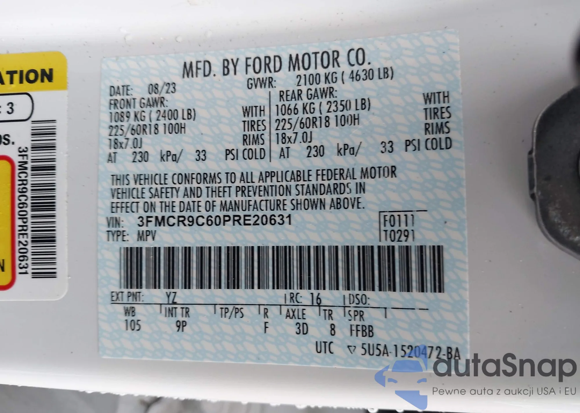 • VIN 3FMCR9C60PRE20631