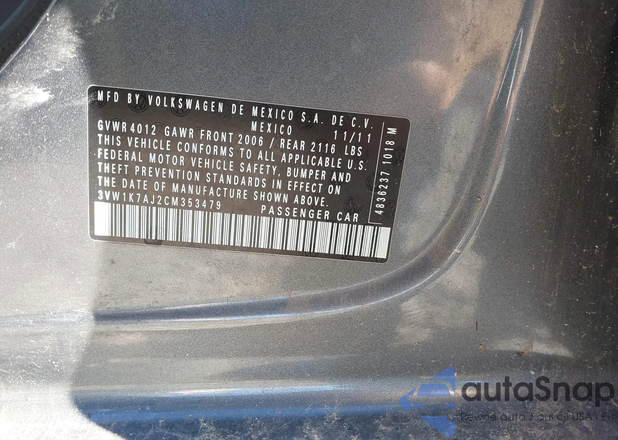 • VIN 3VW1K7AJ2CM353479