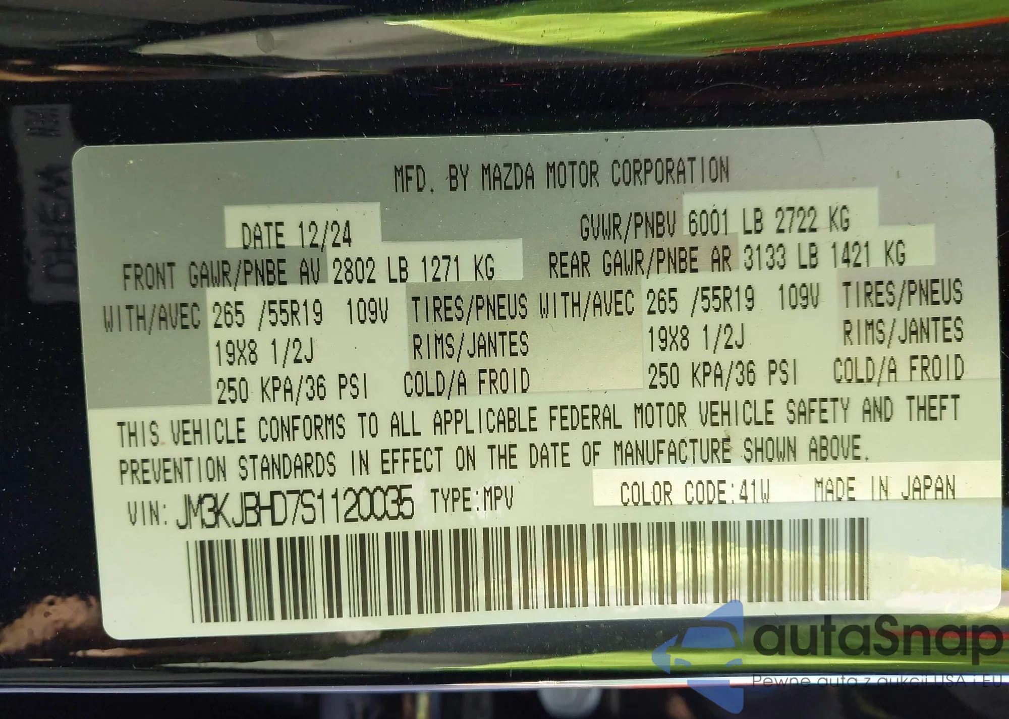 LOT: 43755063 VIN: JM3KJBHD7S1120035