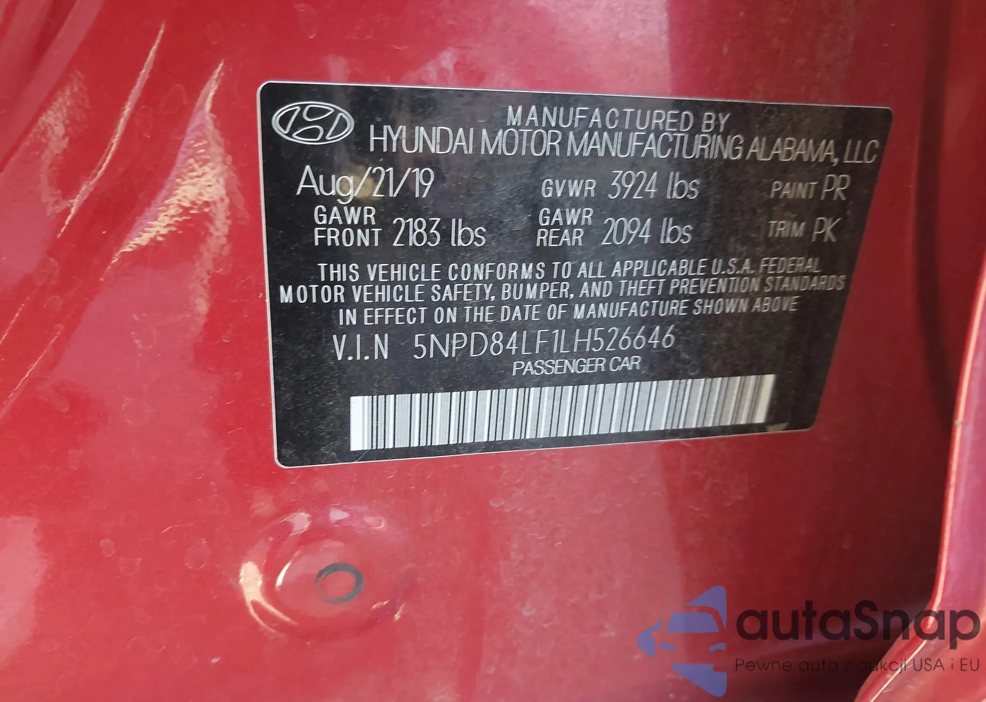 • VIN 5NPD84LF1LH526646
