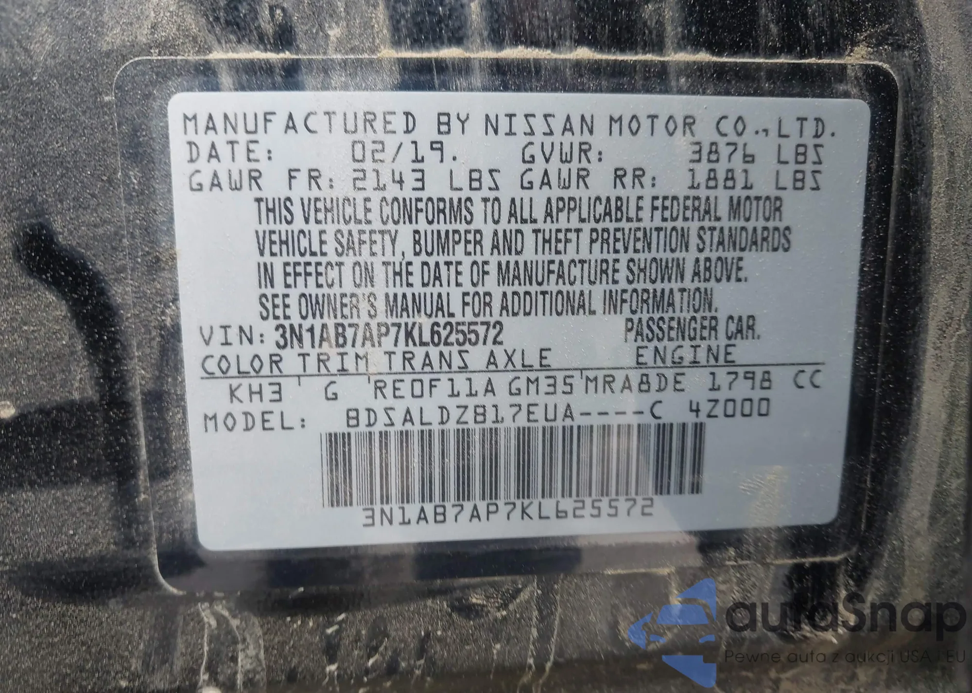 • VIN KL7CJLSB7JB677219